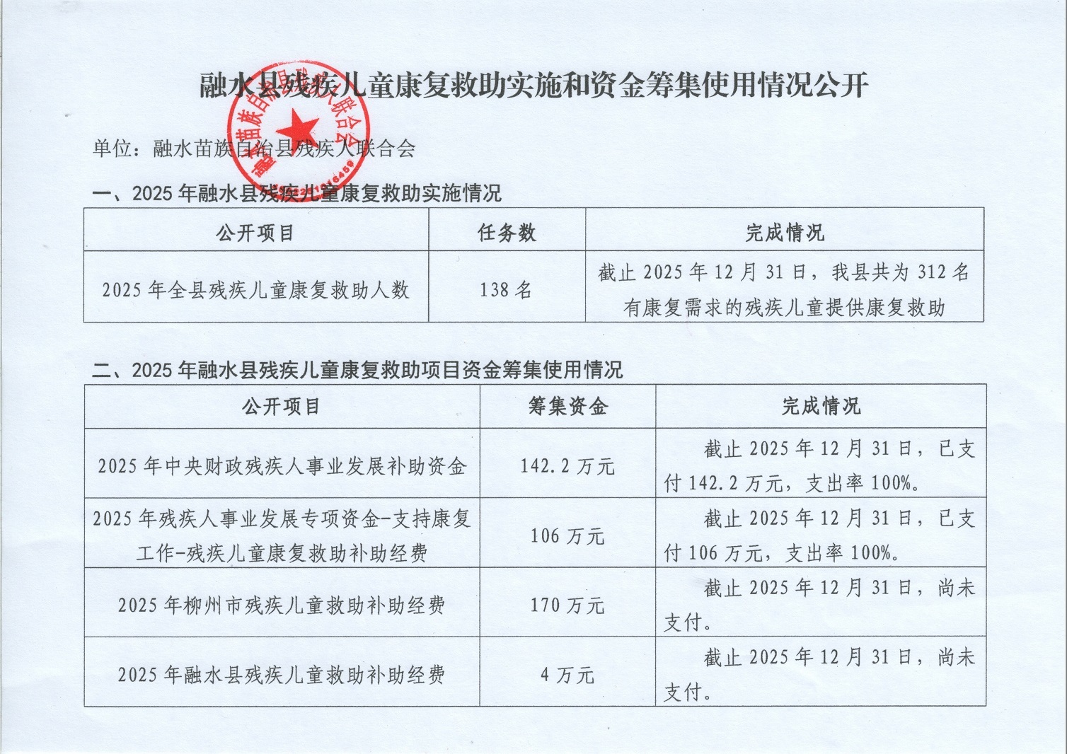 融水县儿童康复救助实施和资金筹集使用情况公开(2025年度)