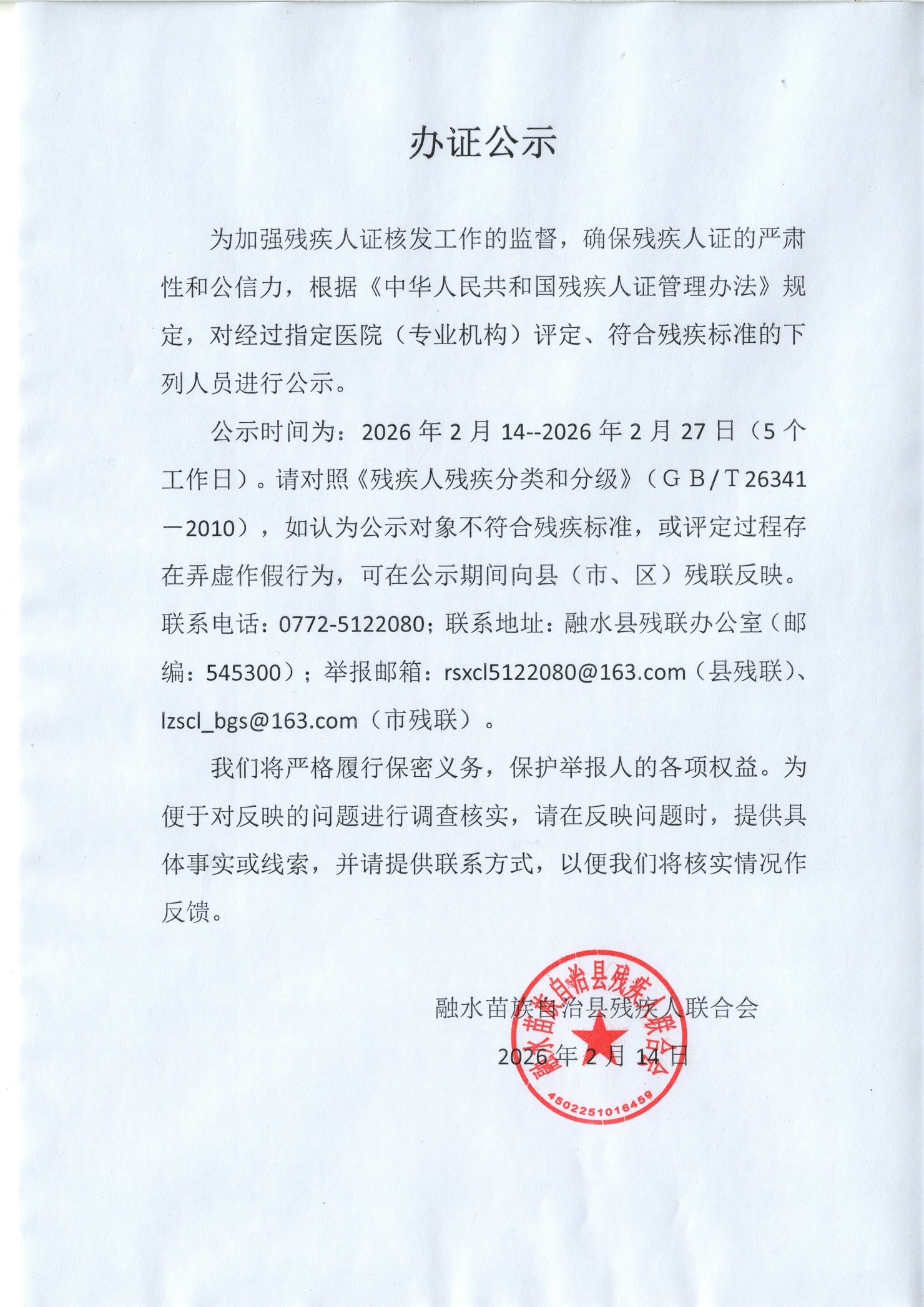 办证公示( 2026.2.14-2026.2.27)