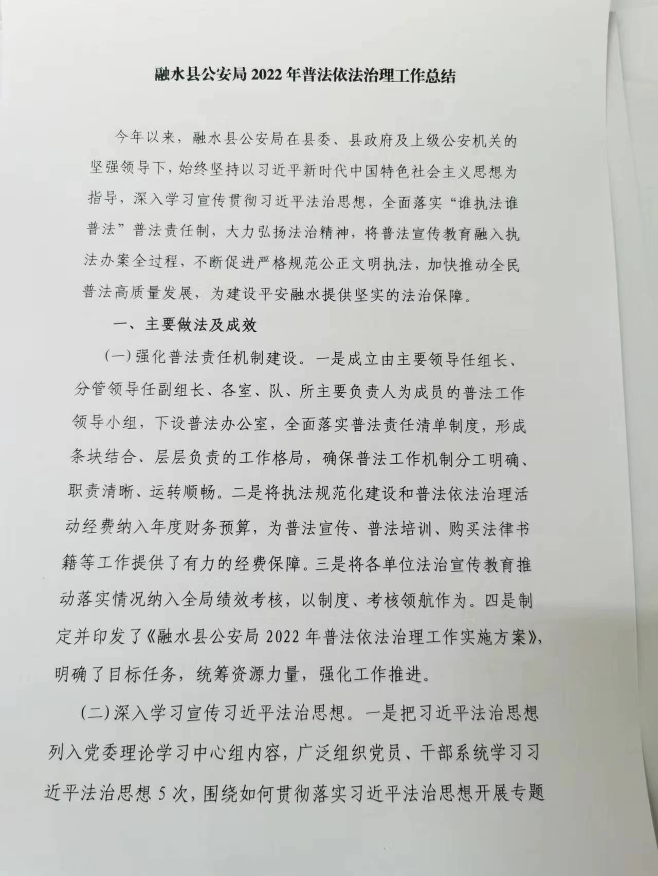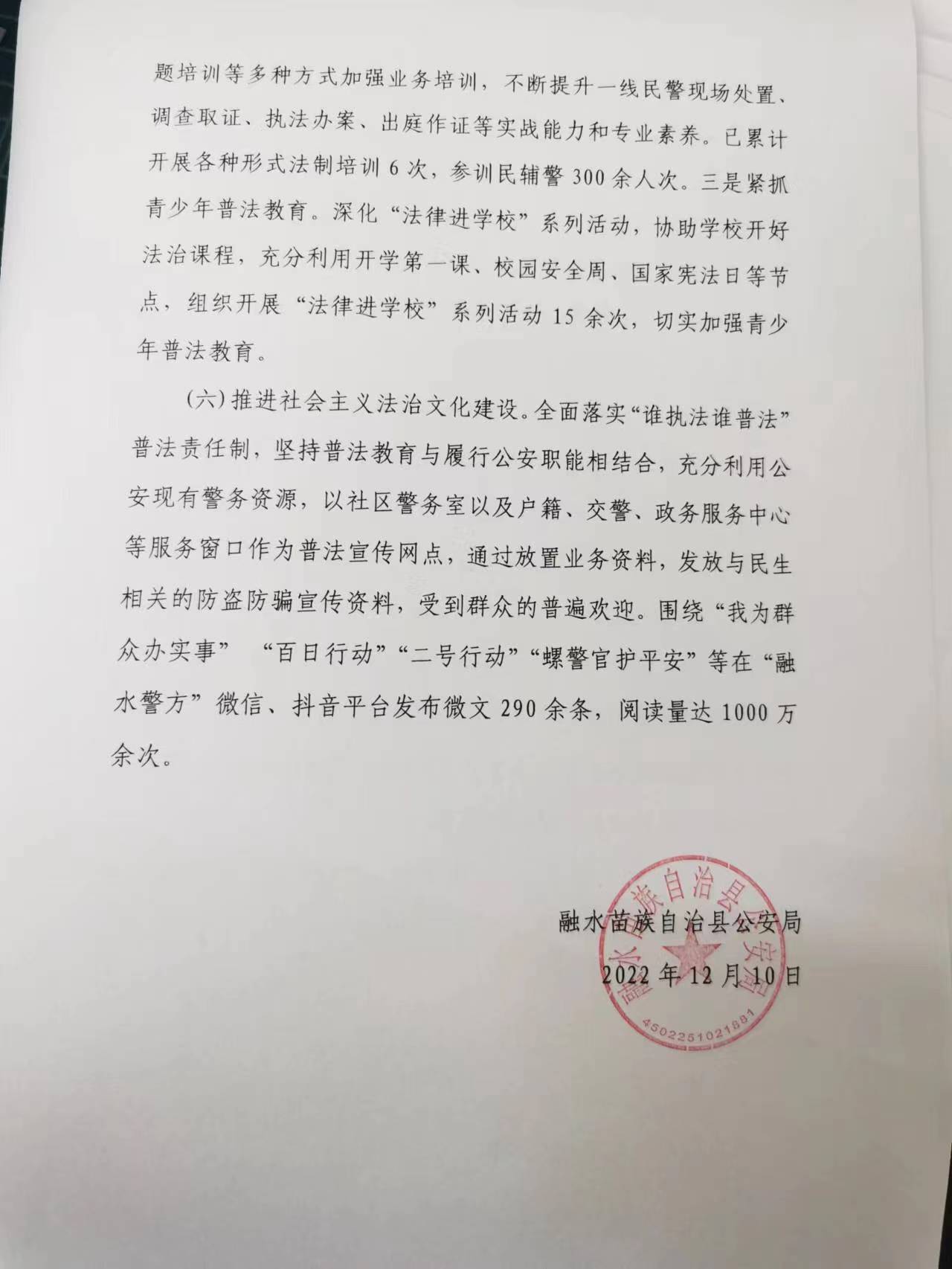 融水县公安局2022年普法依法治理工作总结