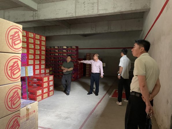 在合兴土产日杂公司烟花爆竹仓库检查产品存储情况