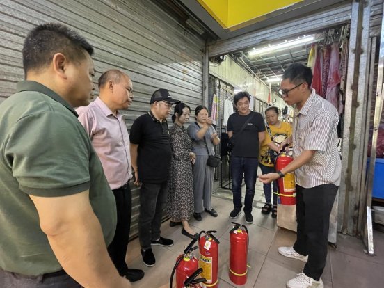 在县城朝阳商场租赁场地,工作人员为租户示范使用灭火器