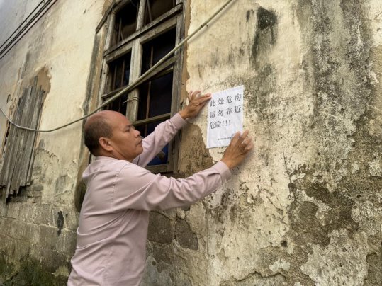 在良寨乡供销社旧旅社危房张贴警示标识