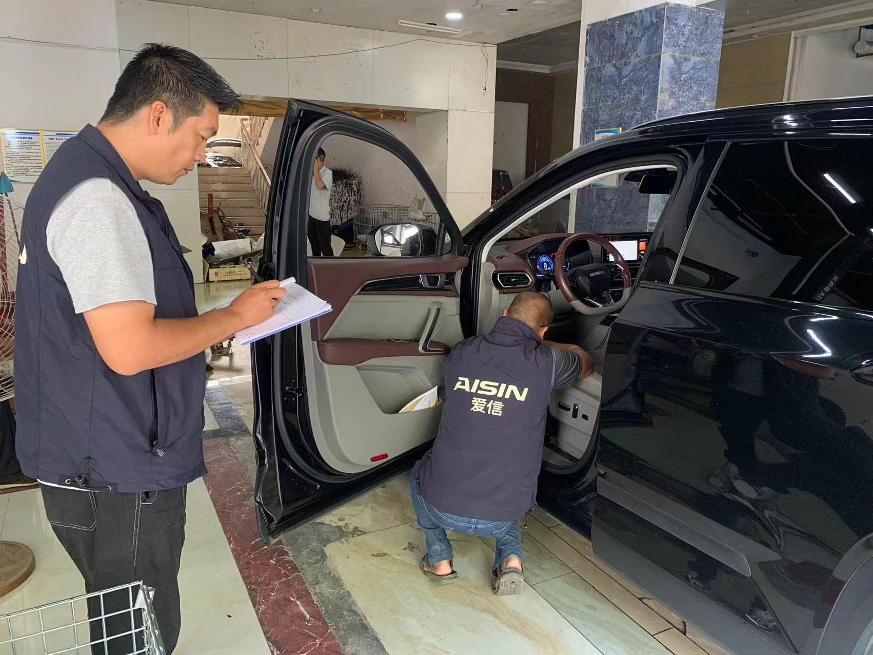图3:汽车修理厂工作人员在现场安装调试北斗车载定位终端设备