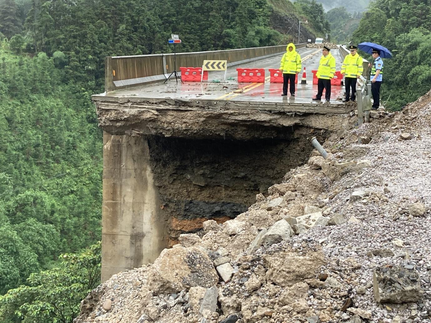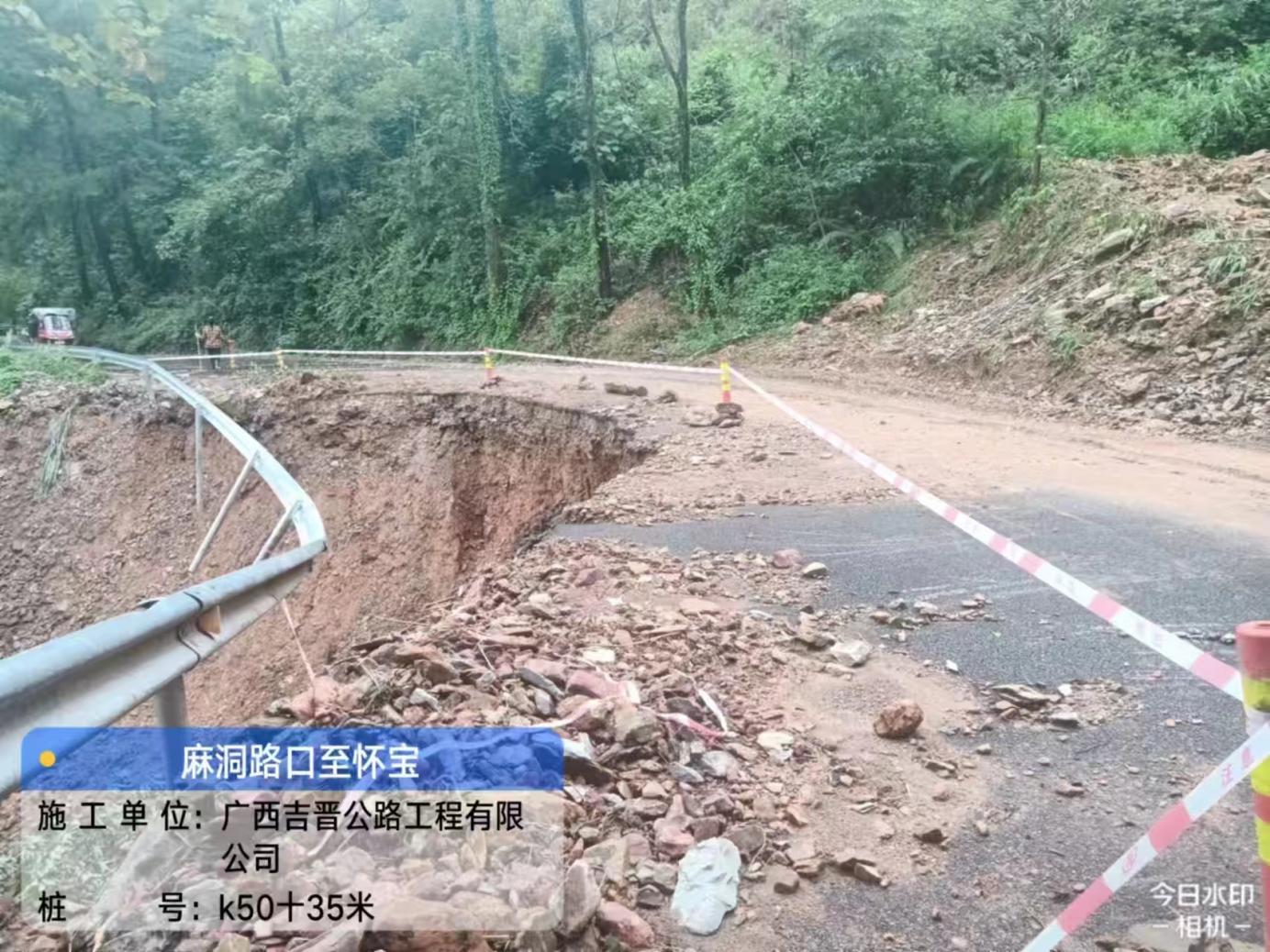 2022年6月4日,融水县四荣乡“田头口至G242”K5+050路段由于路基整体下塌方1处导致交通中断,需要后期修建新的挡土墙,才能进行通车,暂未能抢通交通。