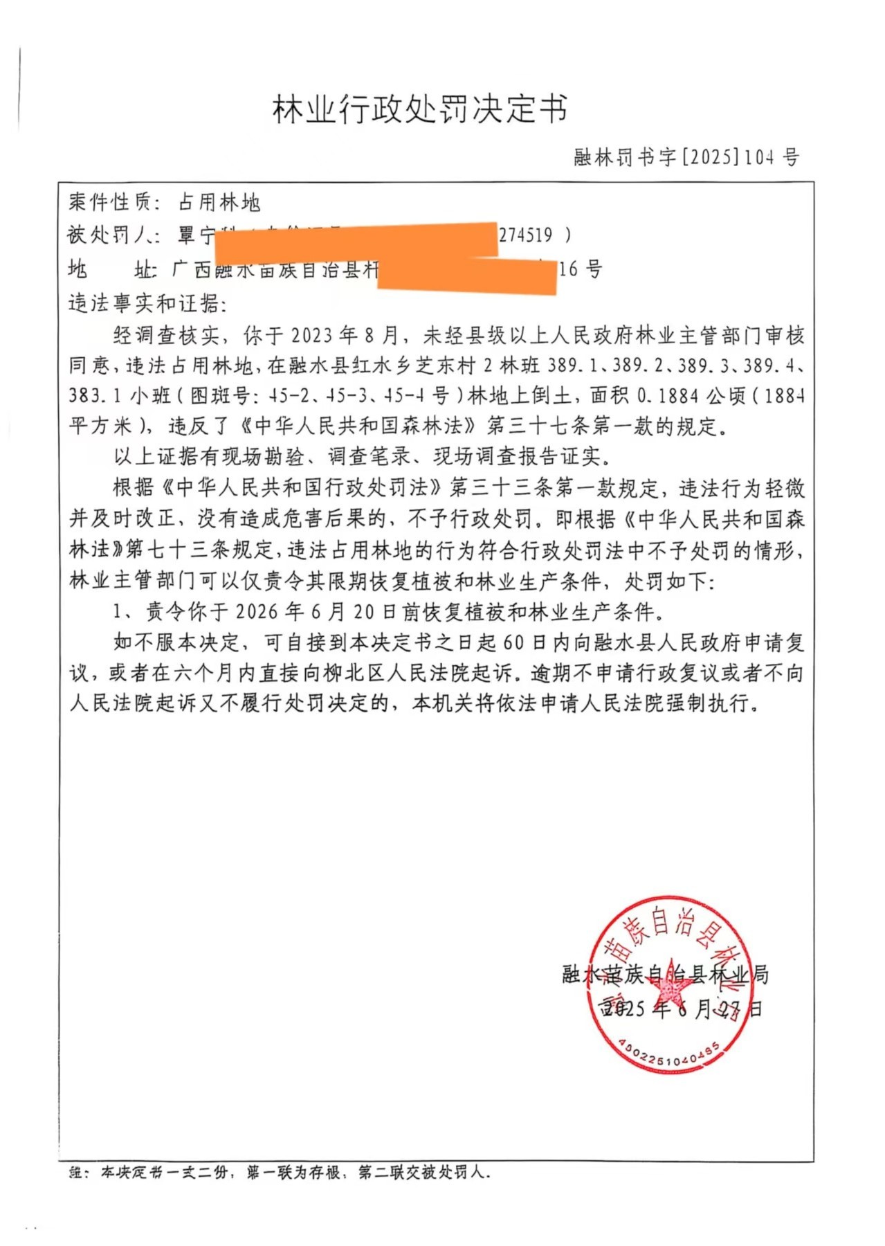林业行政处罚决定书 (融林罚书字[2025]104号)