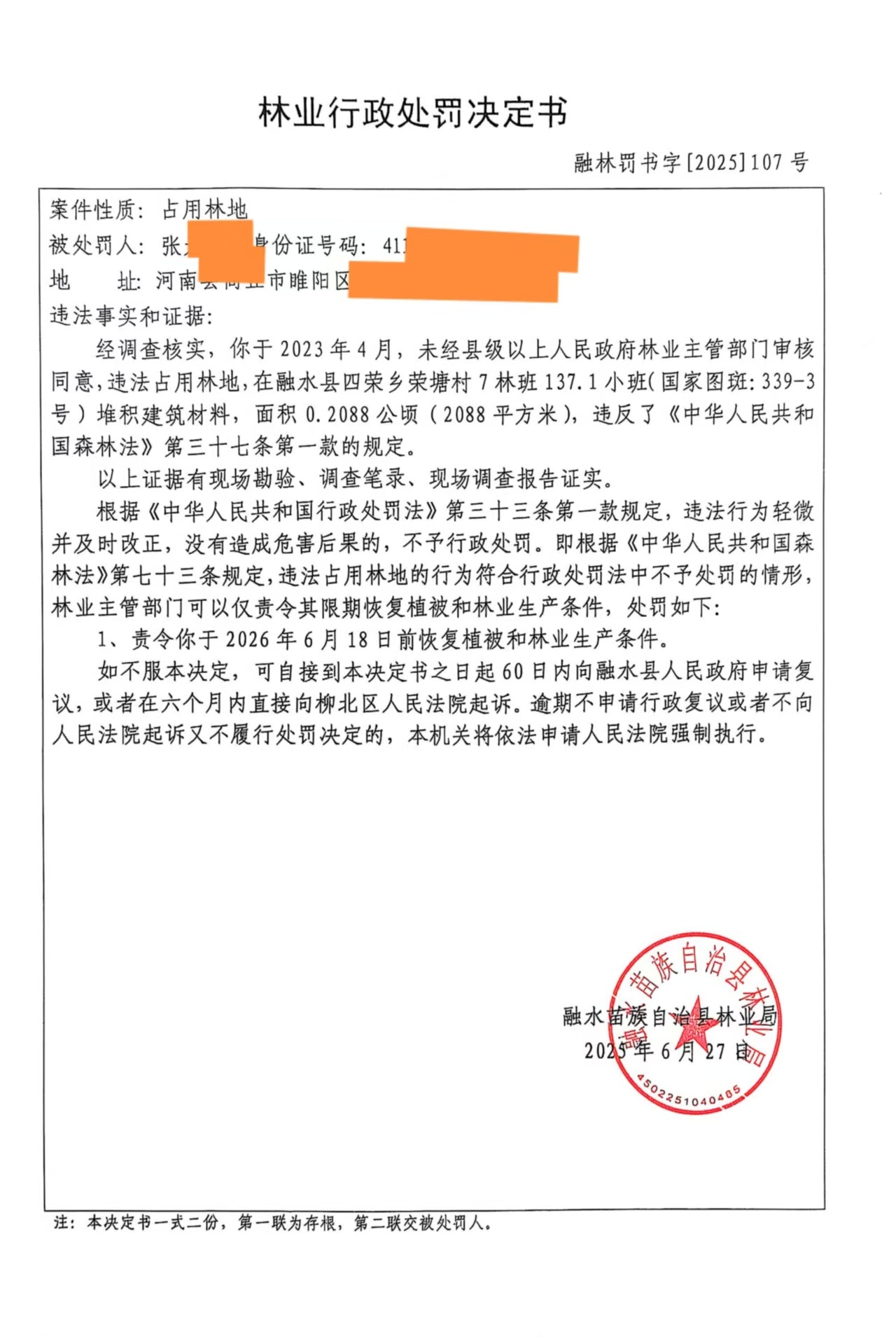 林业行政处罚决定书 (融林罚书字[2025]107号)