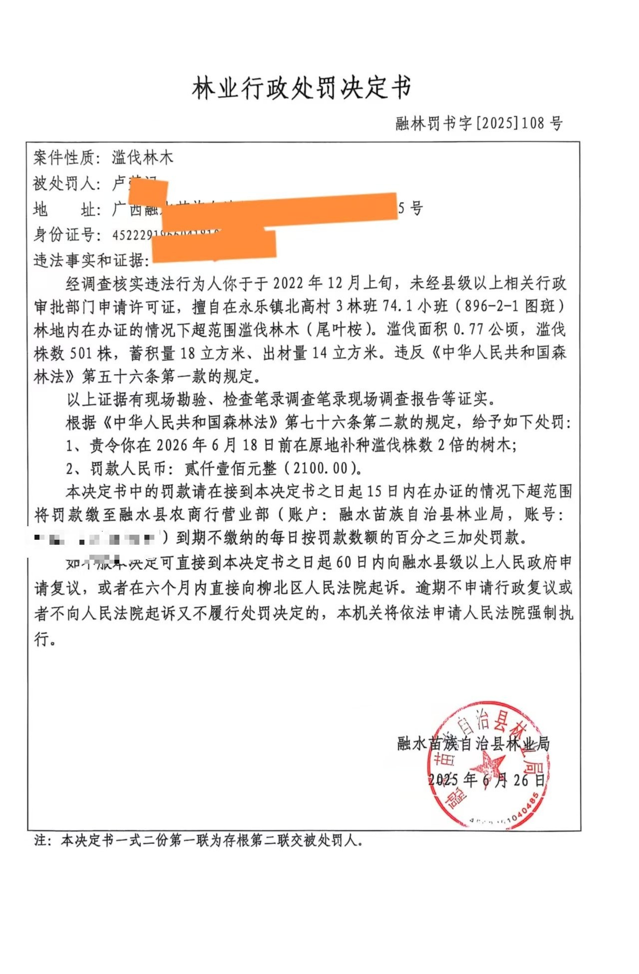 林业行政处罚决定书 (融林罚书字[2025]108号)