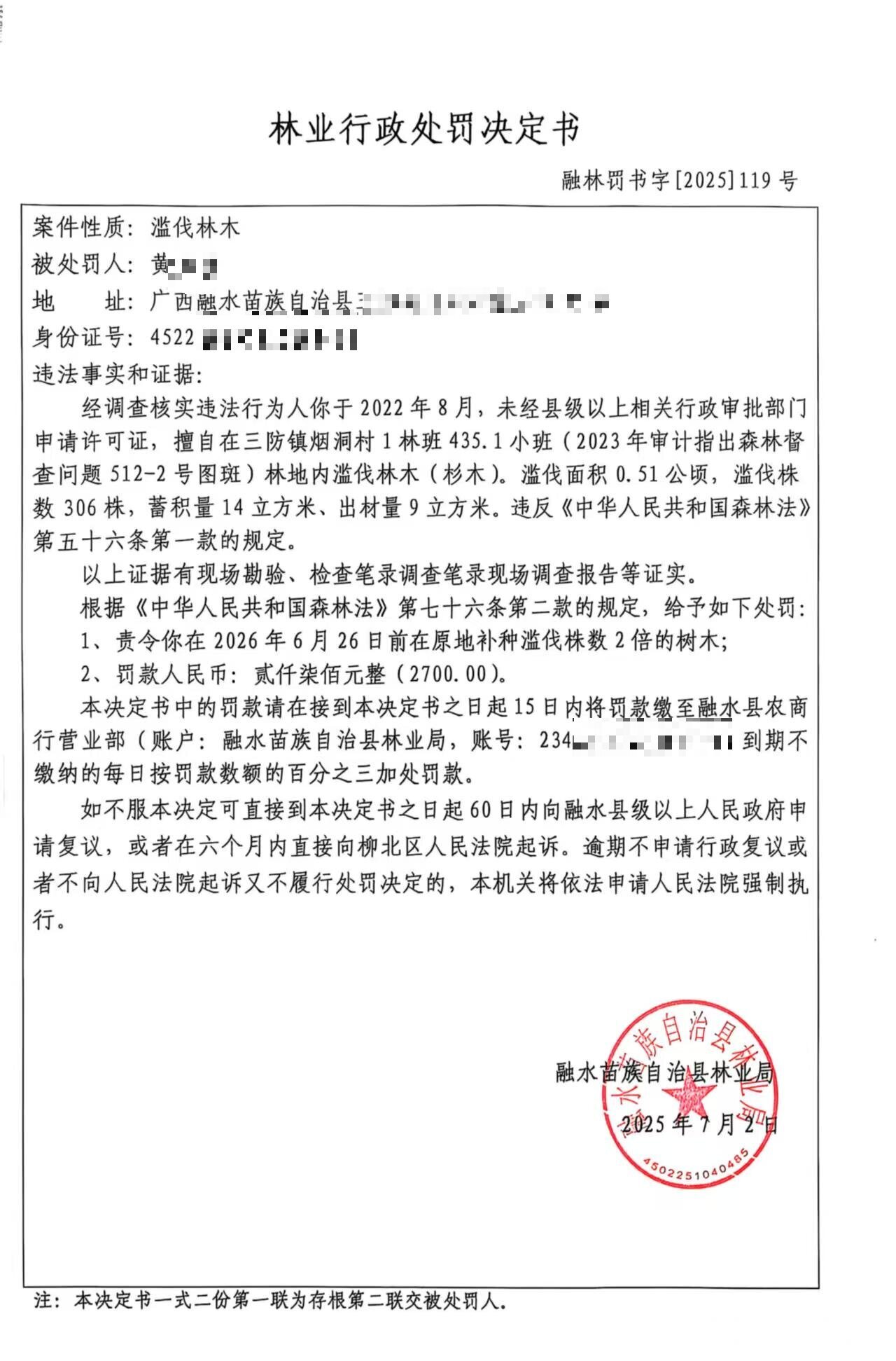 林业行政处罚决定书 (融林罚书字[2025]119号)