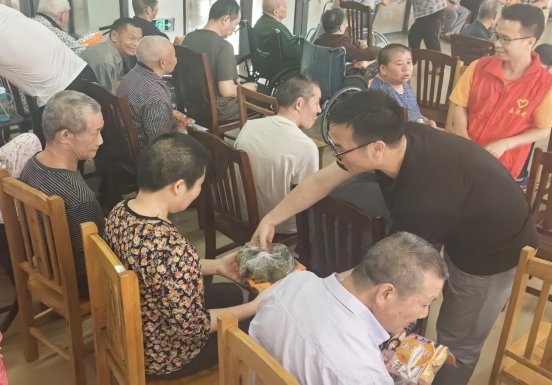 活动结束后,志愿者向老人们分发新鲜的粽子。一个个软糯香甜的粽子包裹着志愿者对老人的美好祝愿,让老人们在中华传统节日感受到党的关怀,感受到社会大家庭的温暖。