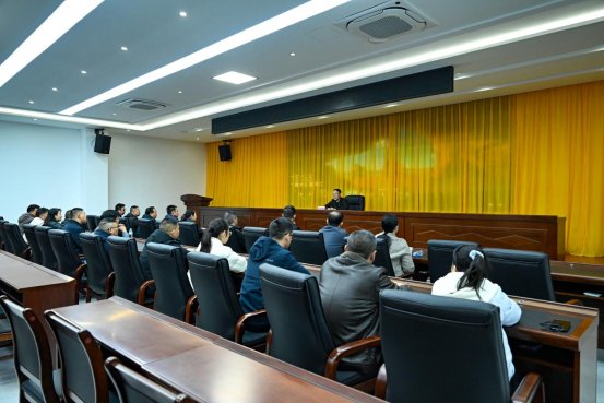 图为在自治县廉政教育基地报告厅,梁海静对县人大机关党员和干部职工作廉政讲话