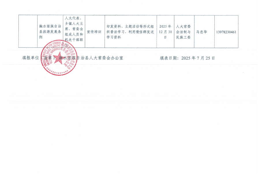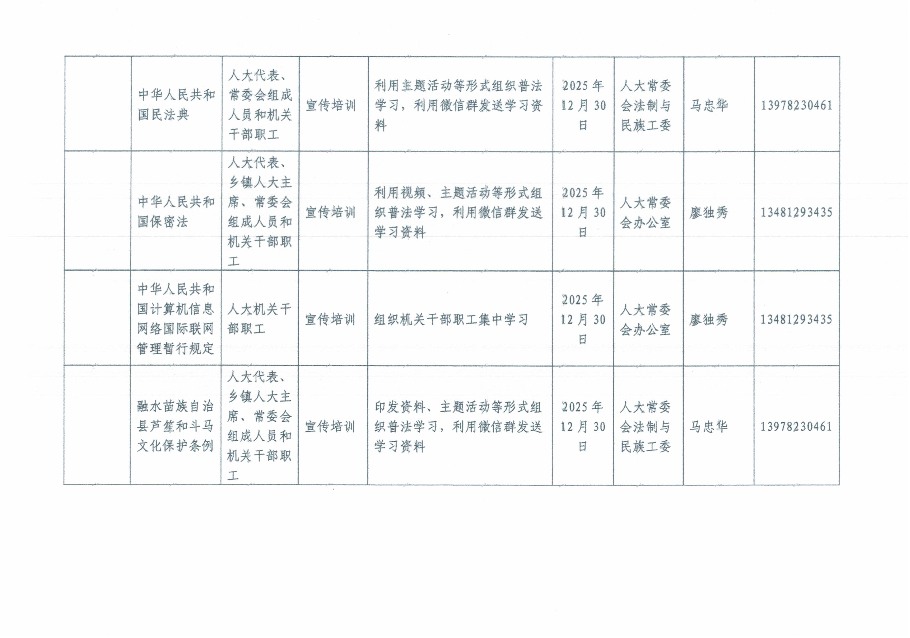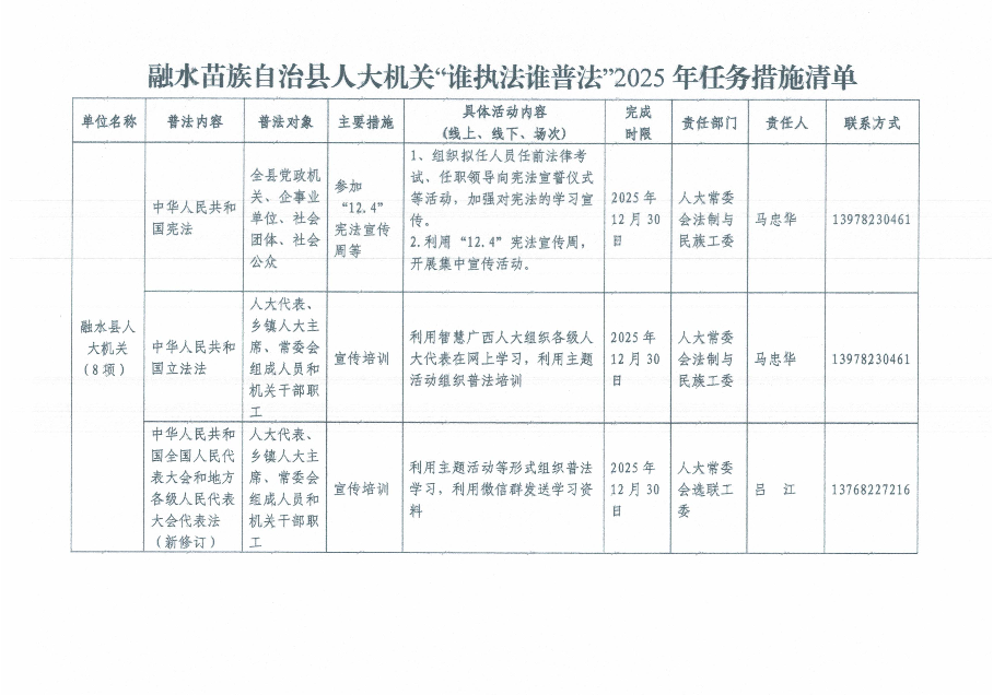 融水苗族自治县人大机关“谁执法谁普法”2025年任务措施清单