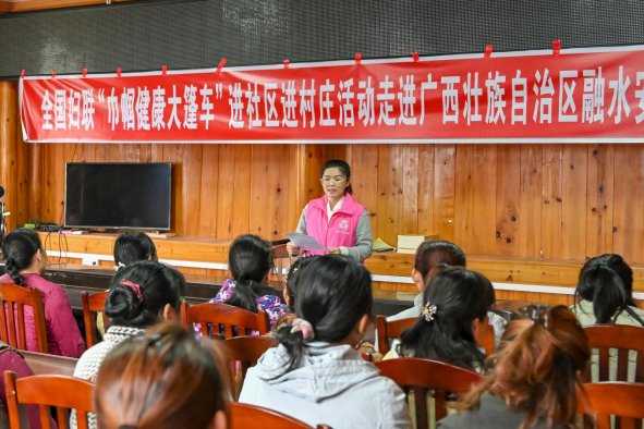 10月23日,“全国妇联‘巾帼健康大篷车’进社区进村庄暨融水‘苗乡巾帼心向党・健康护航新征程’”活动在安陲乡大塅村举行。市、县人大代表、县妇联主席赖晓梅,协同县妇幼保健院、县人民法院融水法庭、安陲乡人大、乡妇联等单位进寨开展理论宣讲、健康服务与维权宣传,以“健康+维权+文化”融合服务,切实为苗乡妇女群众办实事、解难题,护航巾帼健康,厚植苗乡文明新风。