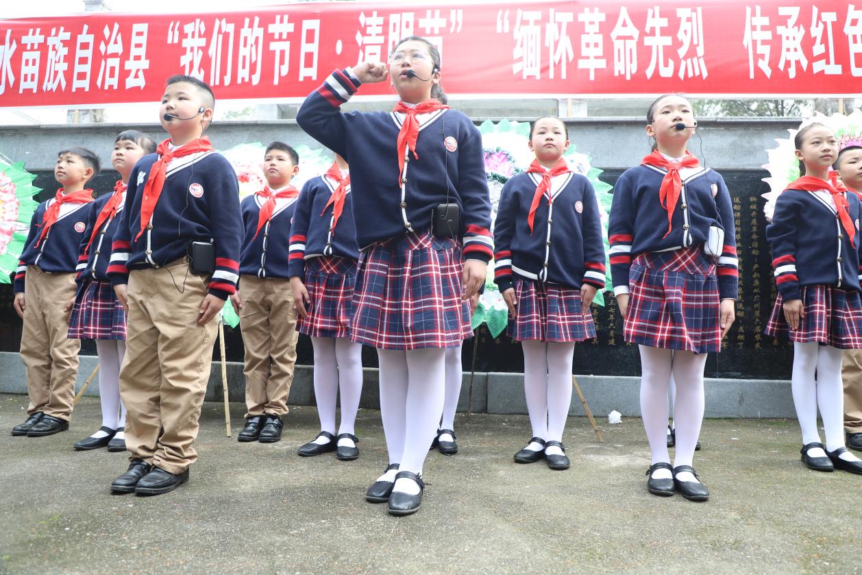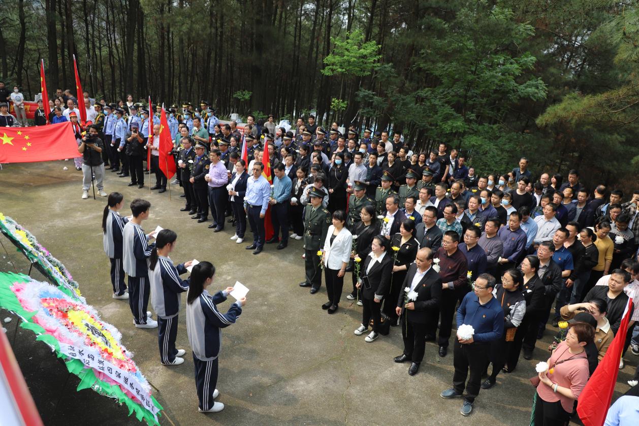 少先队员代表献词,深切缅怀为争取民族独立和人民解放、实现国家富强和人民幸福而英勇献身的革命先烈。县民族高中的学生代表以诗朗诵的形式表达对革命先烈的缅怀之情。
