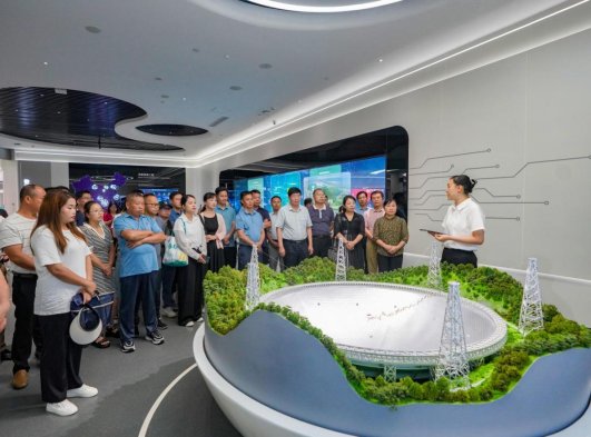 4.图为8月9日在全国爱国主义教育示范基地“中国天眼”——南仁东纪念馆进行现场教学。