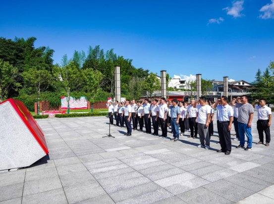 7.图为8月11日,党员学员在息烽集中营革命历史纪念馆重温入党誓词。(廖维摄)