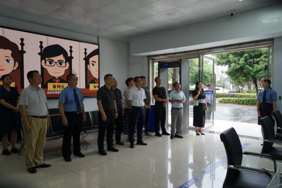 调研组实地查看了自治县人民检察院12309检察服务中心接待窗口(马小茜摄)