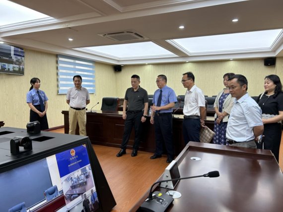 调研组察看自治县人民检察院检察听证室(马小茜摄)
