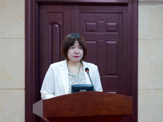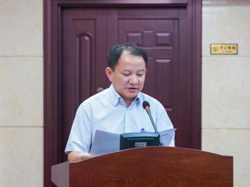 图为自治县财政局副局长陶波在作关于国有资产管理工作情况的报告。