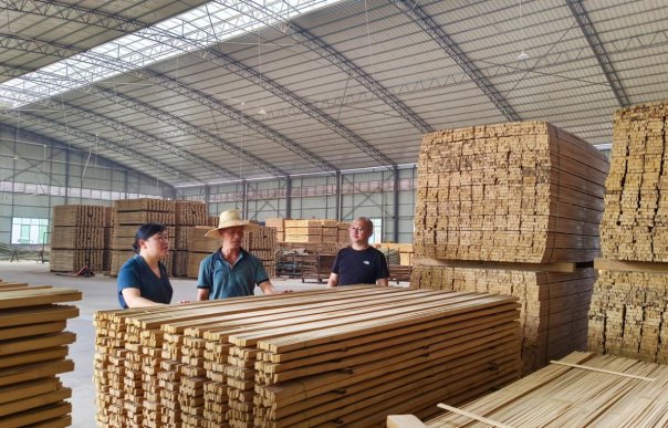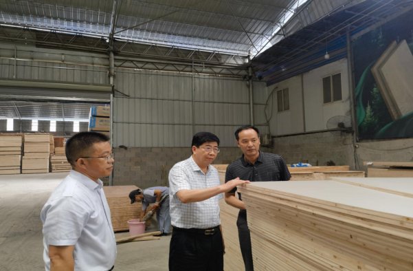 自治县人大常委会主任龙庆革带领调研组到广西融水新材木业有限公司厂区调研