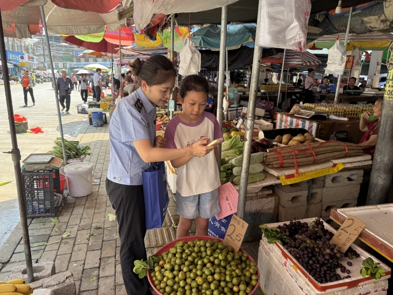 永乐、滚贝、汪洞等市场监管所则聚焦“赶圩日”这一重要阵地,在集镇和农贸市场同步开展宣传活动。一方面,向经营者发放《食品经营应知应会》600份,重点强调索证索票与加工规范的重要性,以此压实经营者的主体责任,强化食品生产经营过程的管理;另一方面,向群众递送《食品安全常识》等资料3000份,还现场演示食品选购及标签解读技巧,帮助群众普及安全常识、提升鉴别能力。