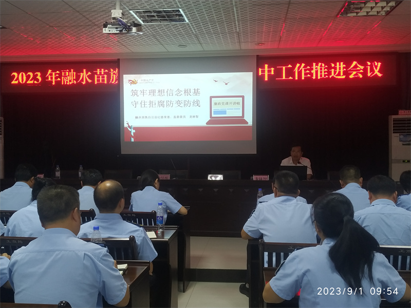 9月1日上午,融水县市场监管局召开2023年全县市场监管年中工作会议。会议主要任务是,以习近平新时代中国特色社会主义思想为指引,全面贯彻党的二十大精神,深入贯彻落实习近平总书记对广西“五个更大”重要要求和对柳州工作的重要指示精神,传达学习自治区市场监管局和柳州市市场监管局相关工作会议精神,接受县纪委监委廉政教育,总结上半年工作,分析当前发展形势,部署下一步工作,进一步重实效、强实干、抓落实,锚定目标,笃行不怠,全力推动融水市场监管事业再创新辉煌。