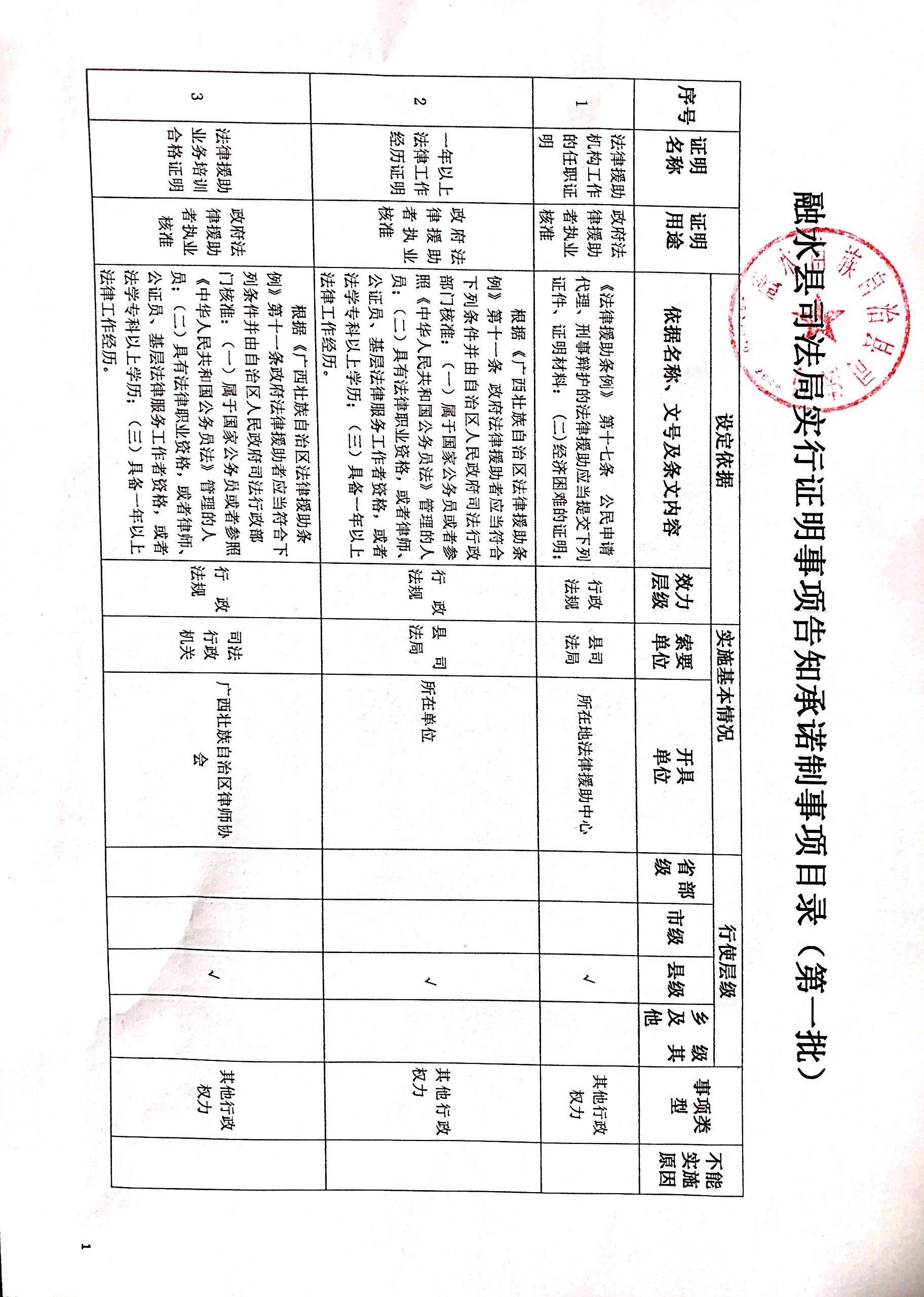 融水苗族自治县司法局实行证明事项告知承诺制事项目录(第一批)