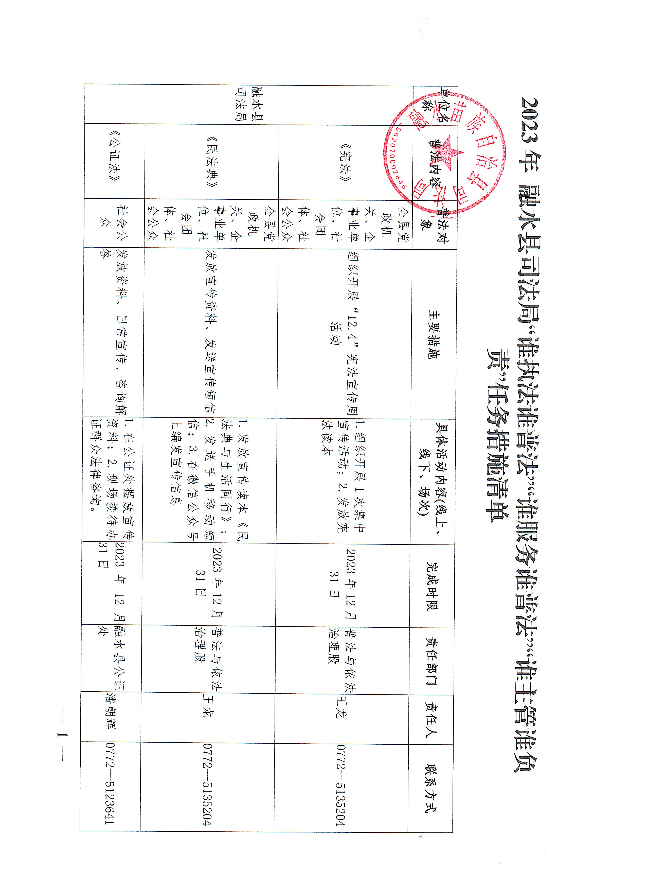 2023年 融水县司法局“谁执法谁普法”“谁服务谁普法”“谁主管谁负责”任务措施清单