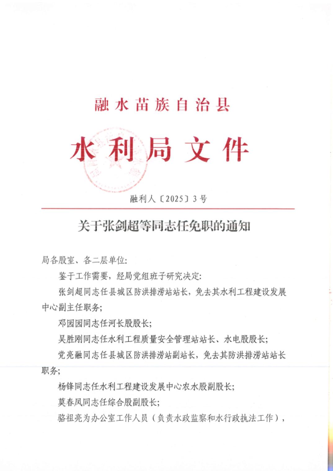 融利人〔2025〕3号 关于张剑超等同志任免职的通知