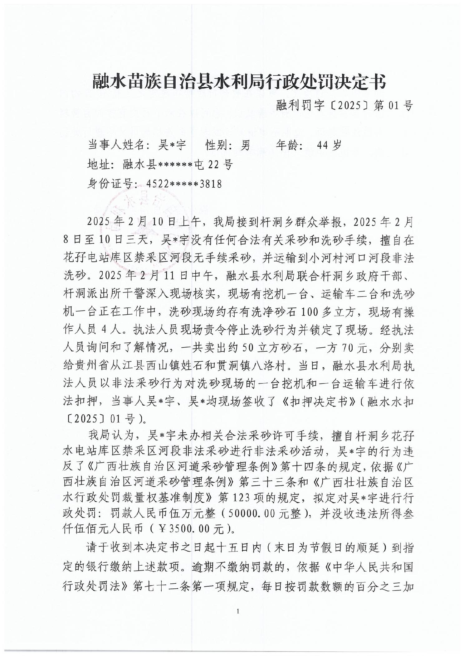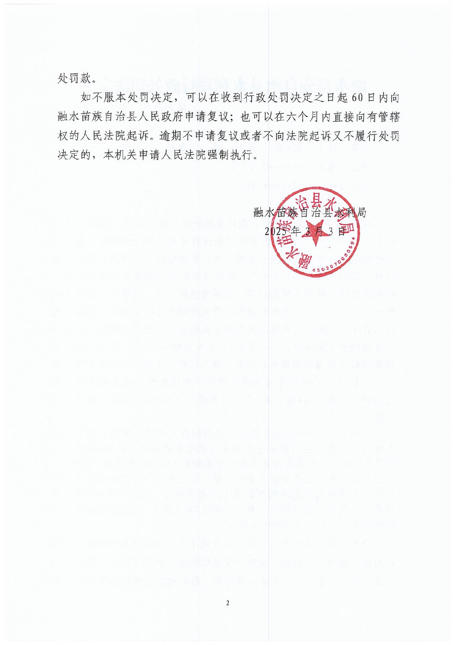 融水县水利局行政处罚决定书