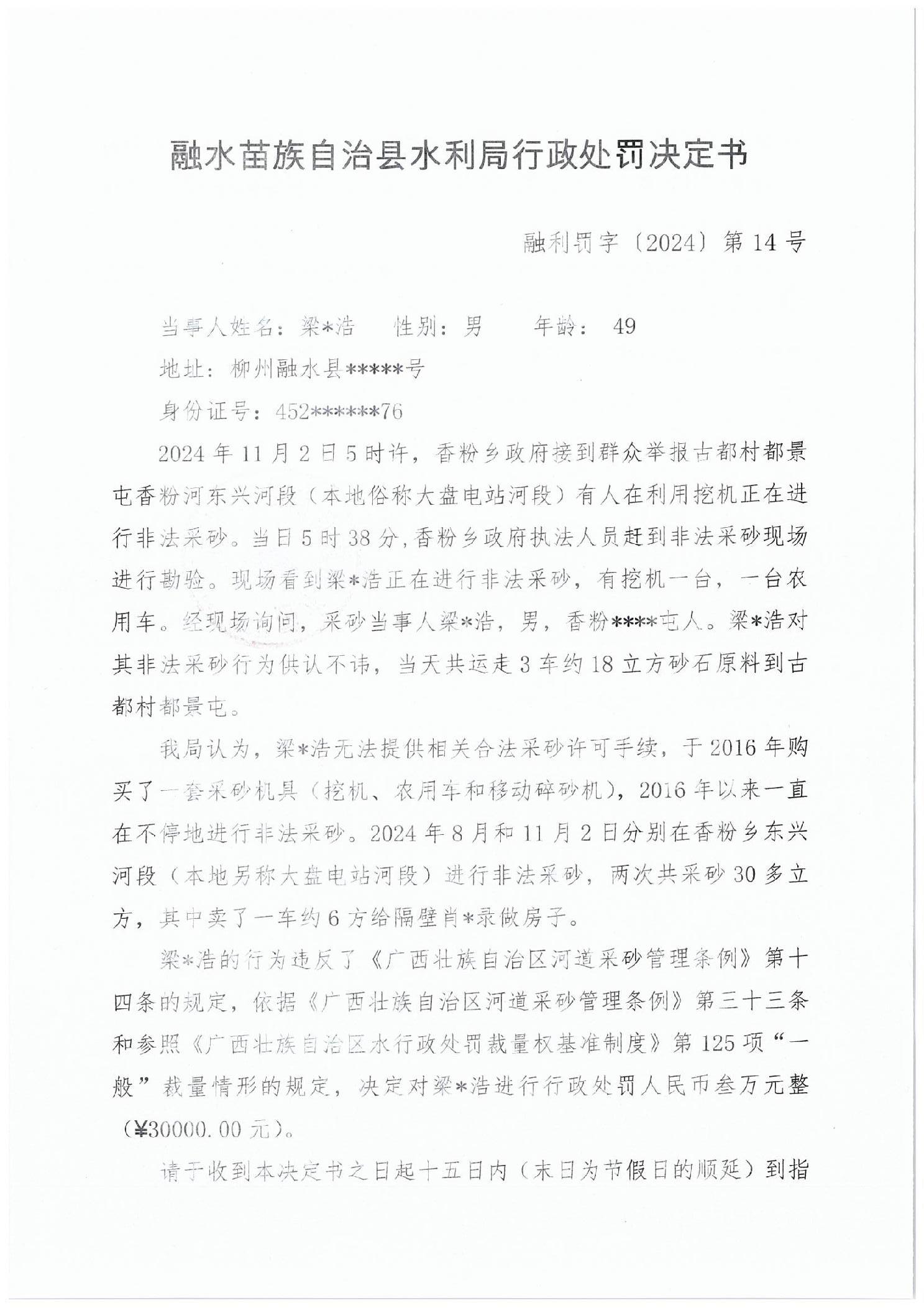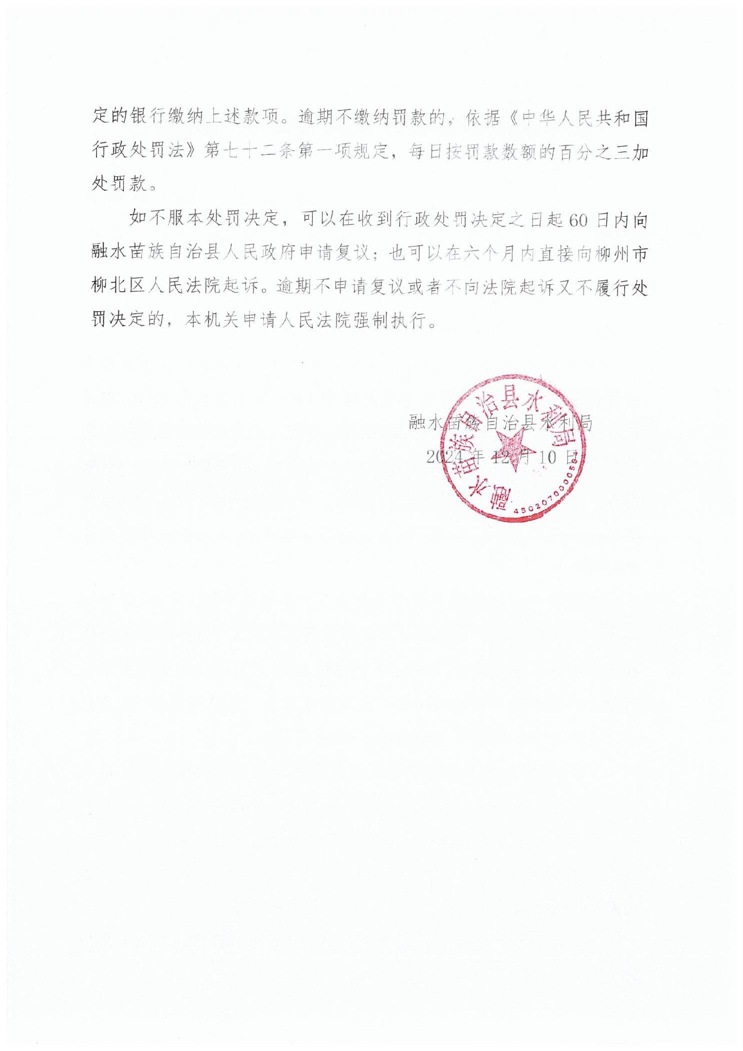 融水县水利局行政处罚决定书14号