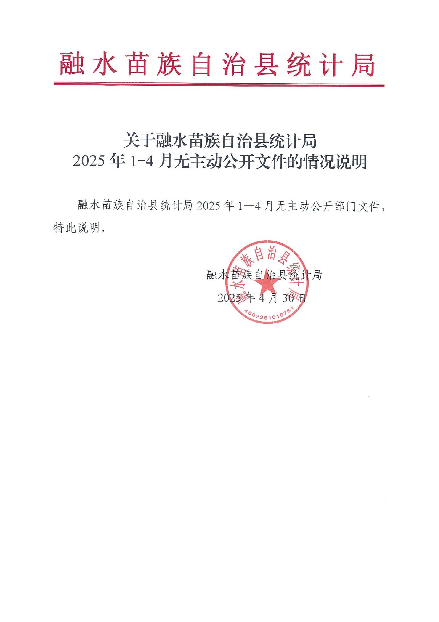 关于融水苗族自治县统计局2025年1-4月无主动公开文件的情况说明