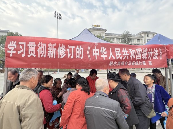 2024年12月4日在国家宪法日的浓厚法治氛围里,融水县统计局积极行动,组织干部职工奔赴县城芦笙广场,让新修订《统计法》走进大众视野。此次宣传,县统计局借国家宪法日东风,全方位、多维度推广宣传《统计法》,不仅旨在让每一位数据填报者成为法治践行者,更是为融水县经济社会发展筑牢数据“安全墙”。
