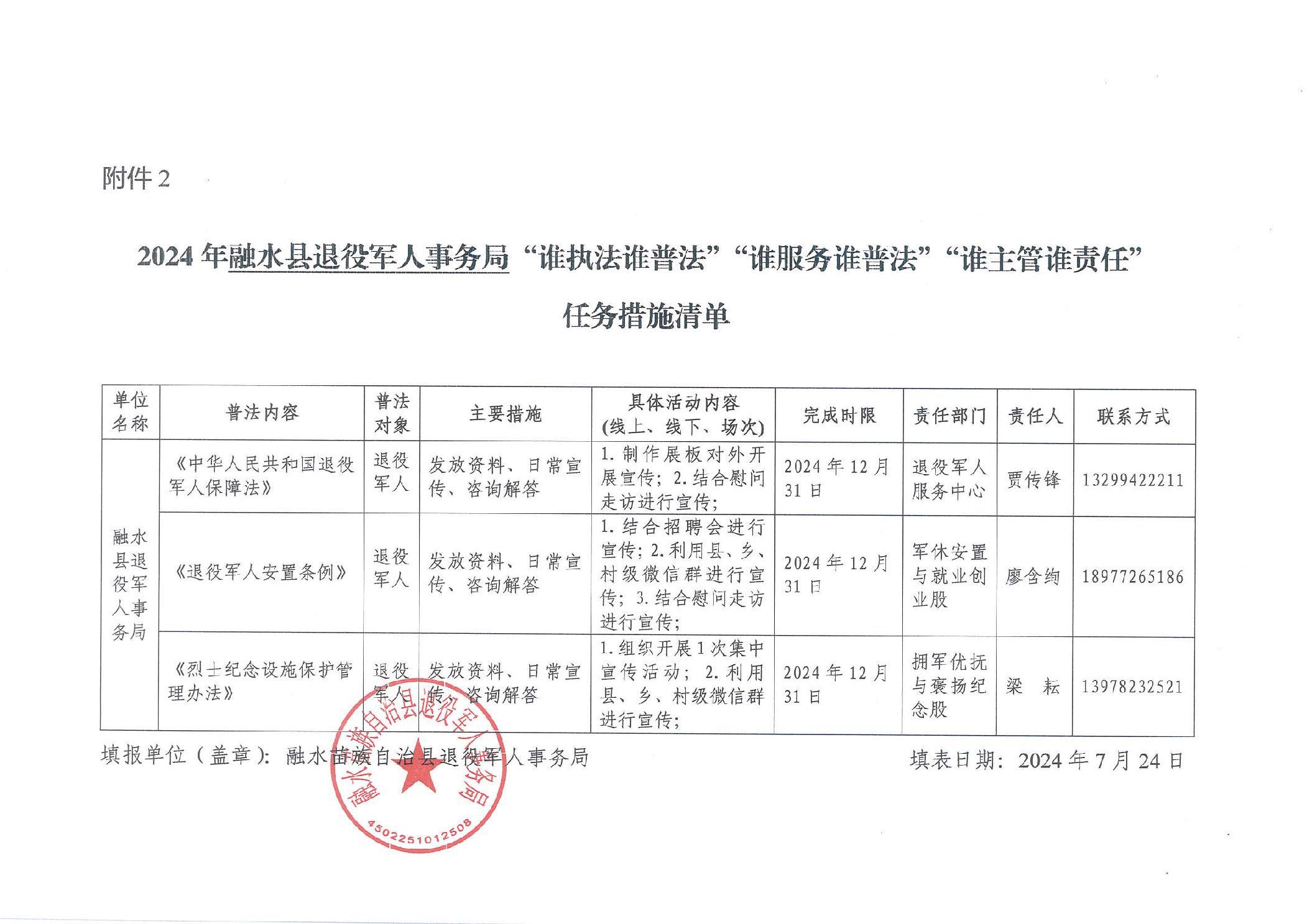 2024年 融水县退役军人事务局“谁执法谁普法””谁服务谁普法“”谁主管谁责任“任务措施清单