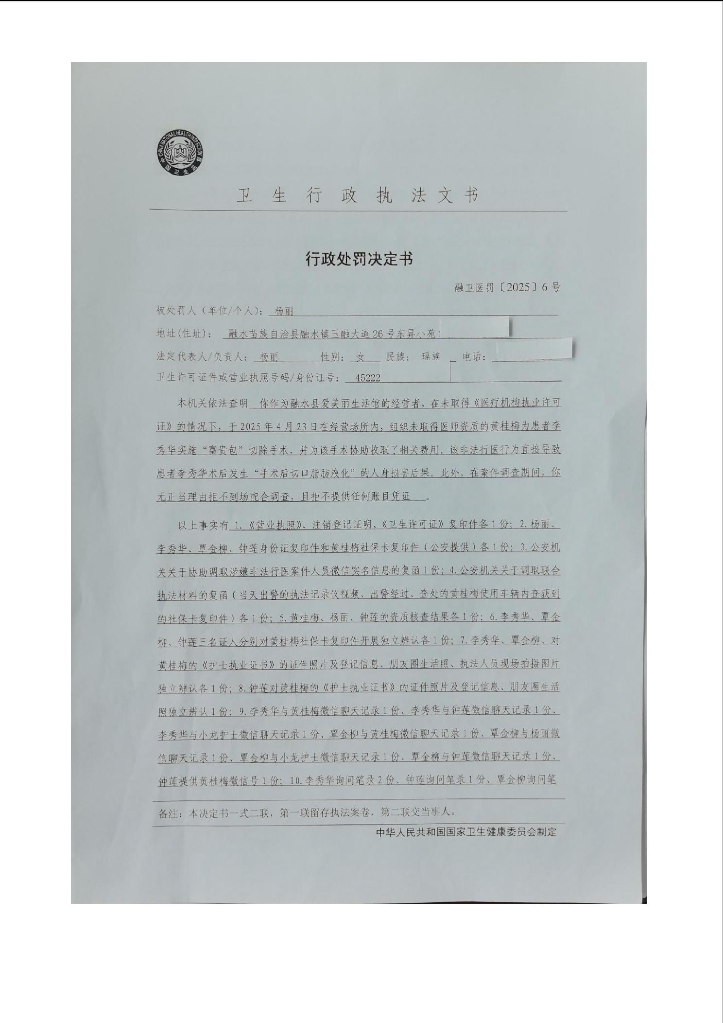 融卫医罚〔2025〕6号行政处罚决定书