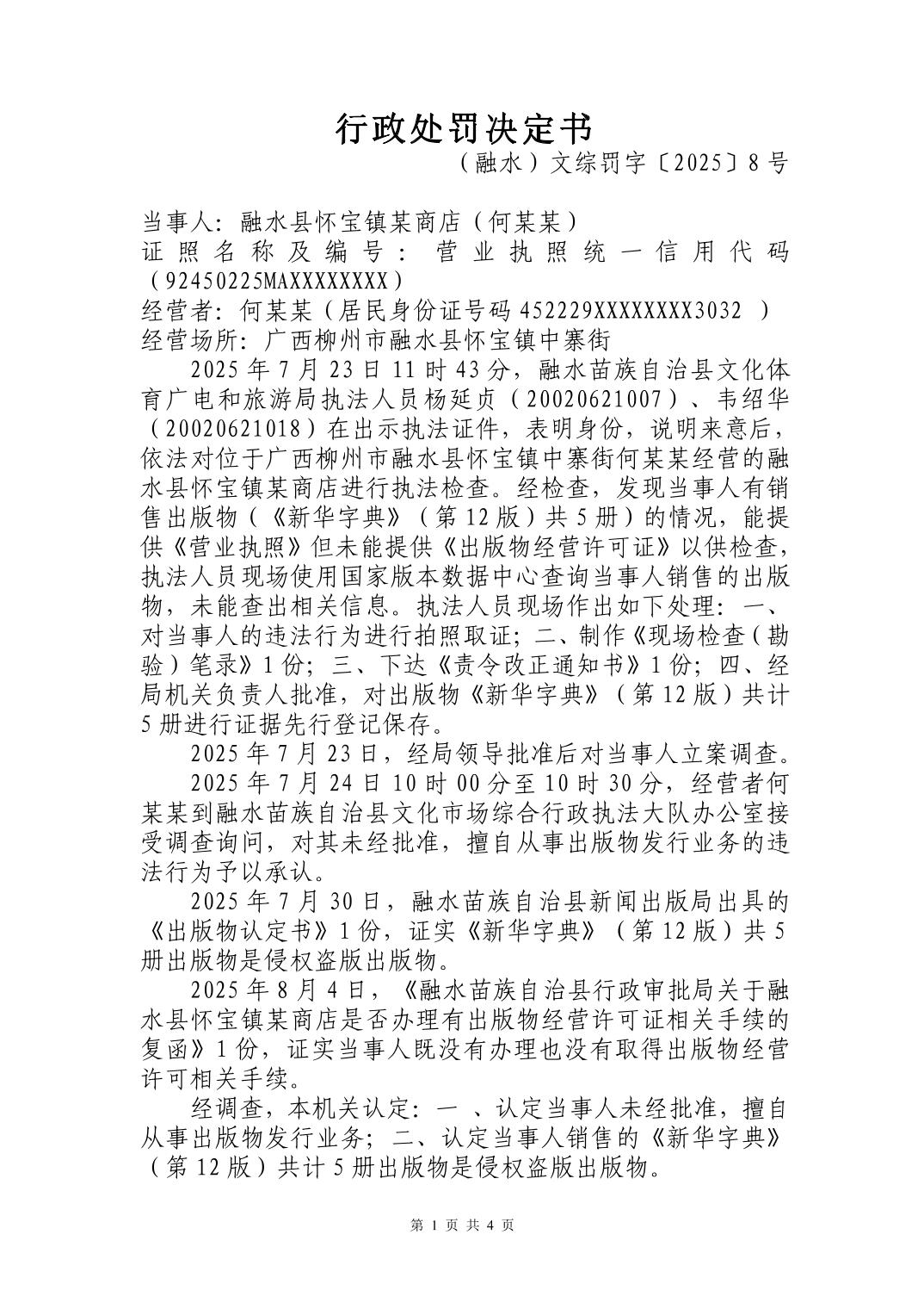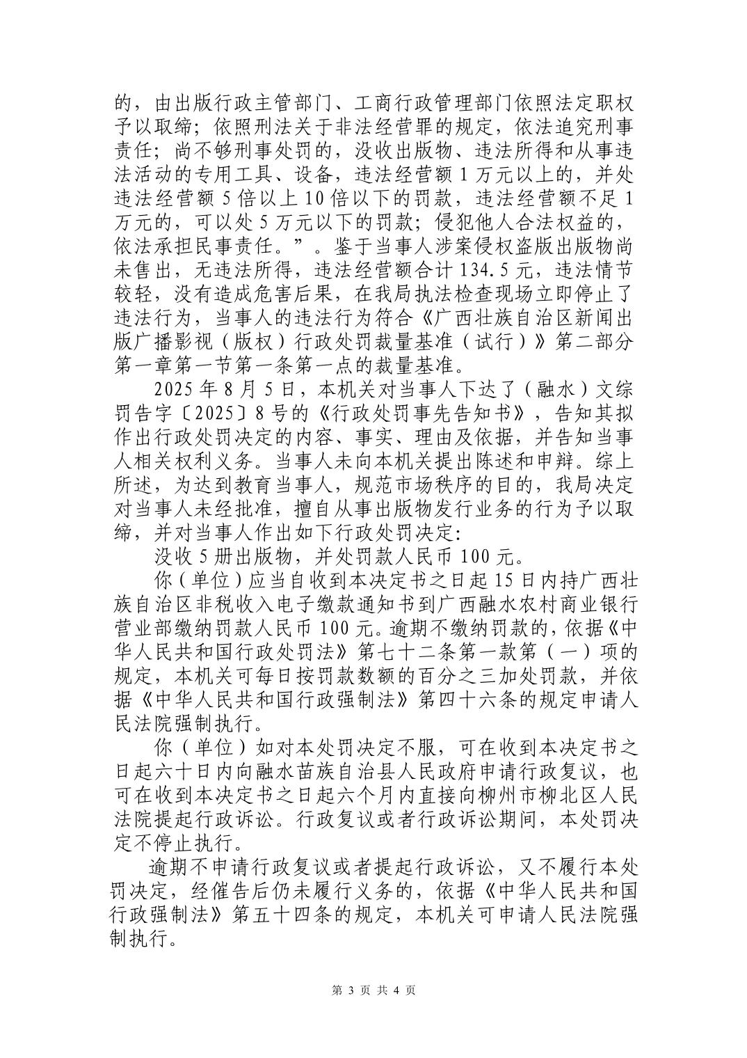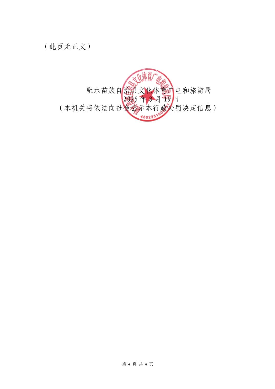 (融水)文综罚字〔2025〕8号行政处罚书