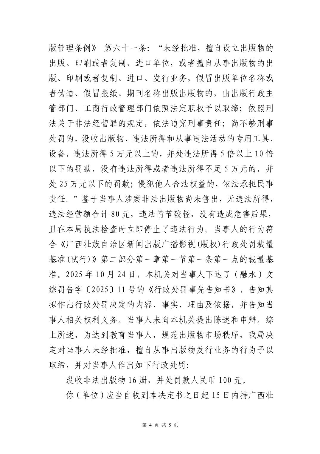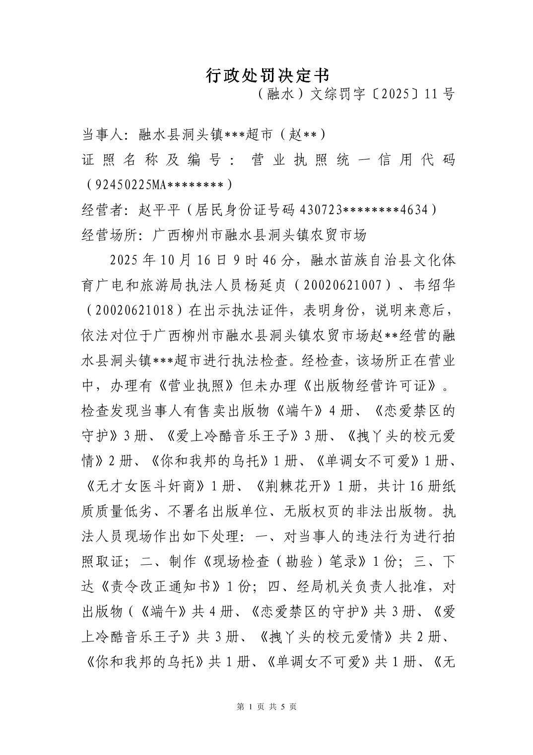 (融水)文综罚字〔2025〕11号 行政处罚决定书
