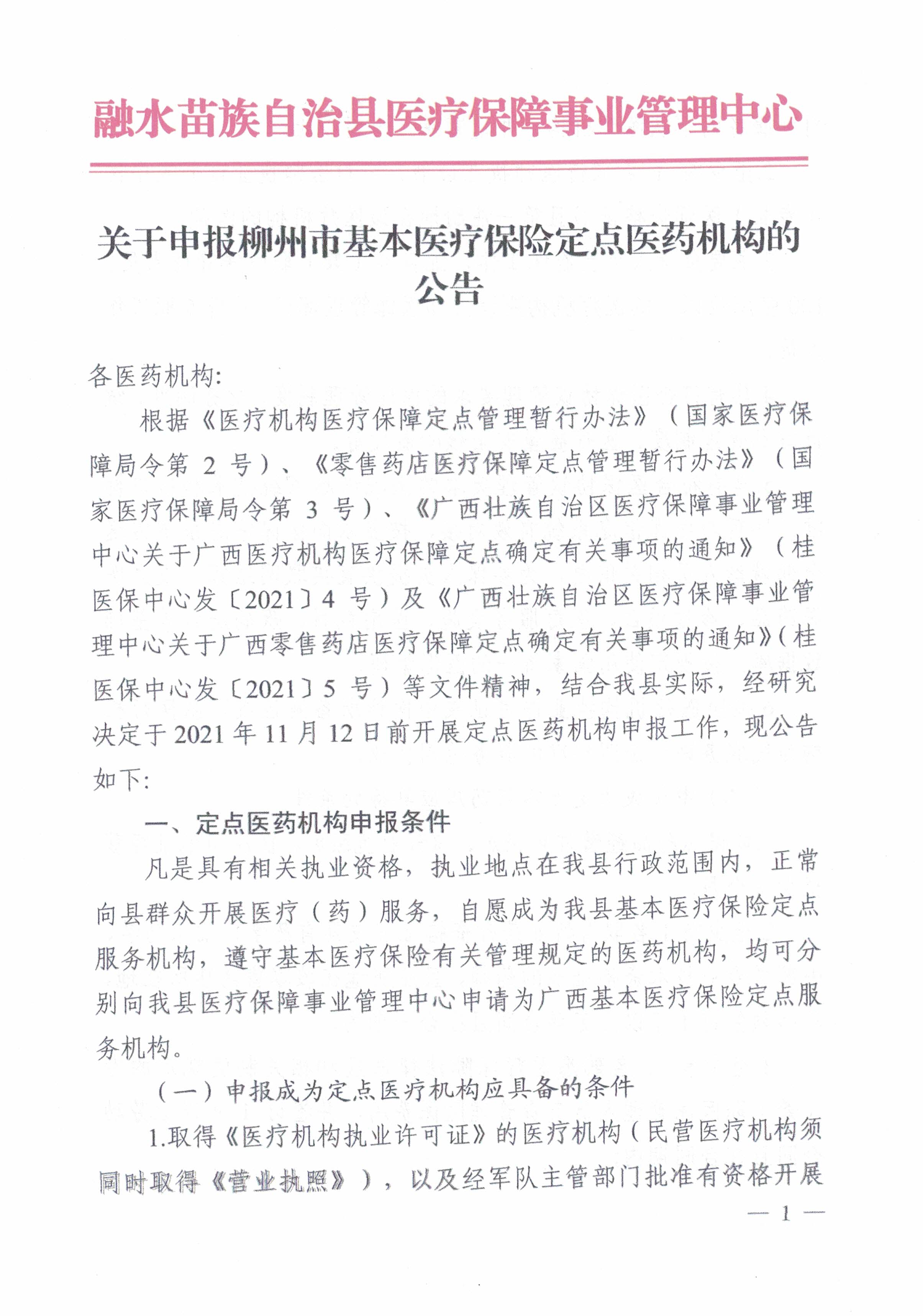关于申报柳州市基本医疗保险定点医药机构的公告