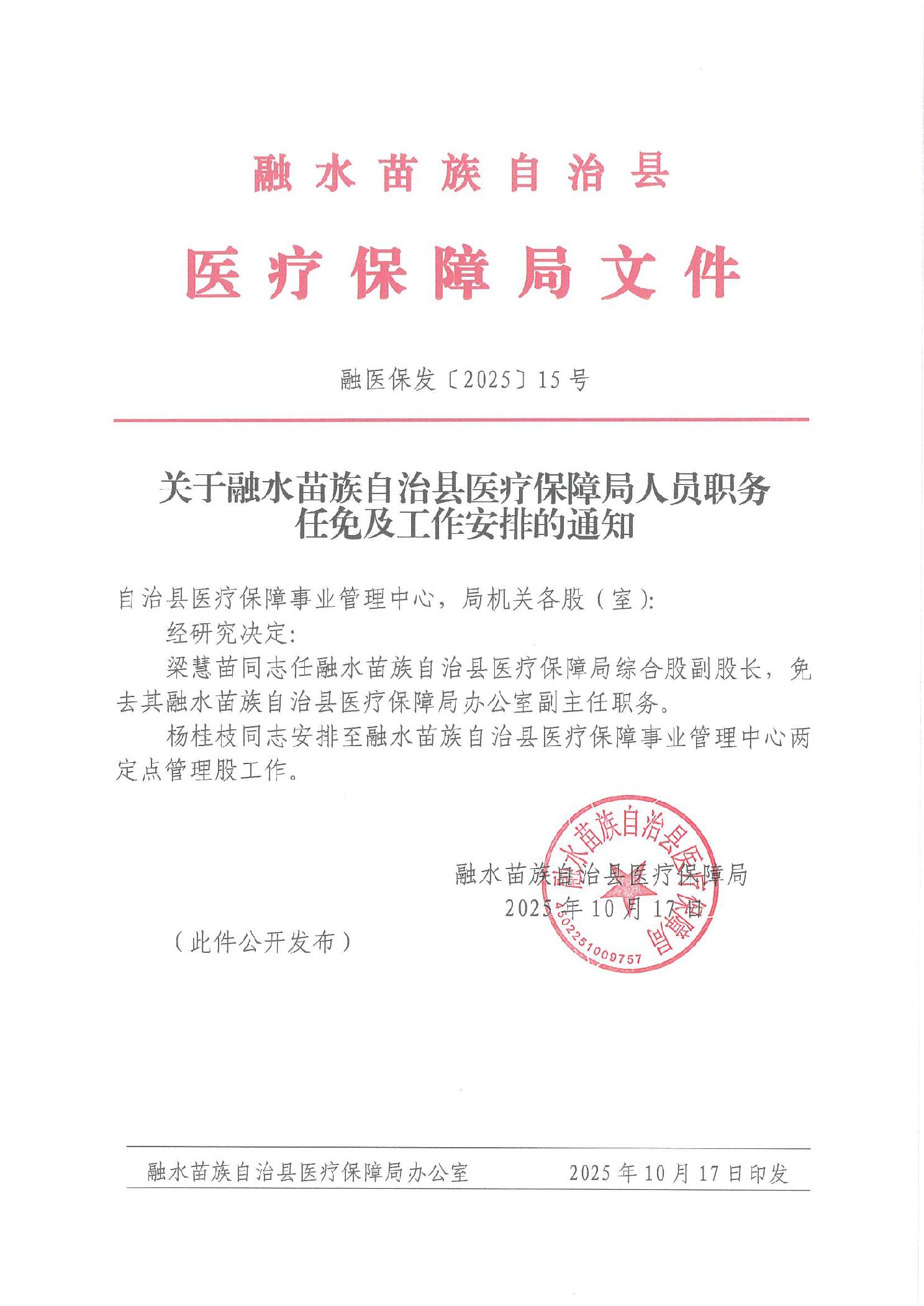 融医保发〔2025〕15号关于融水苗族自治县医疗保障局人员职务任免及工作安排的通知