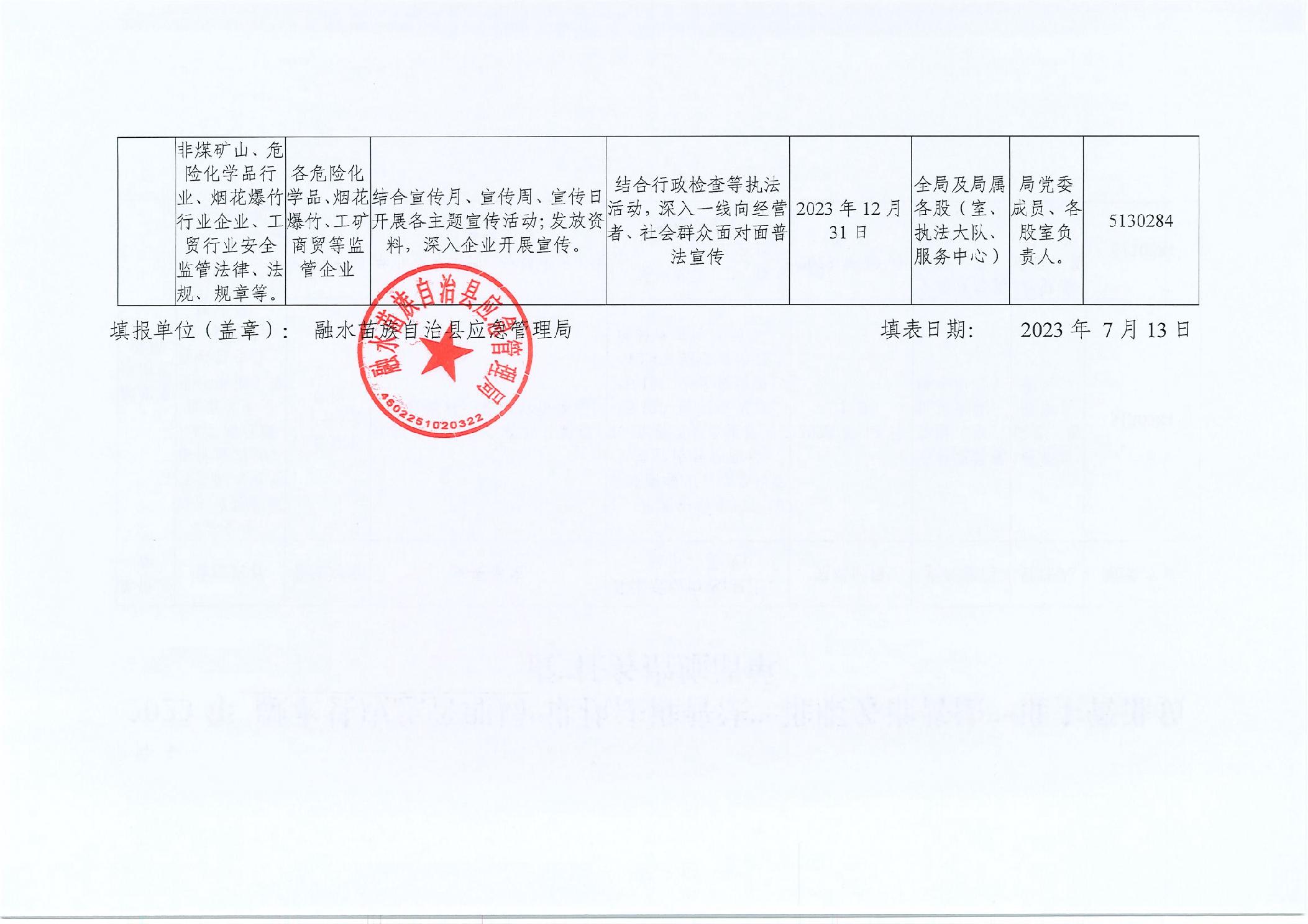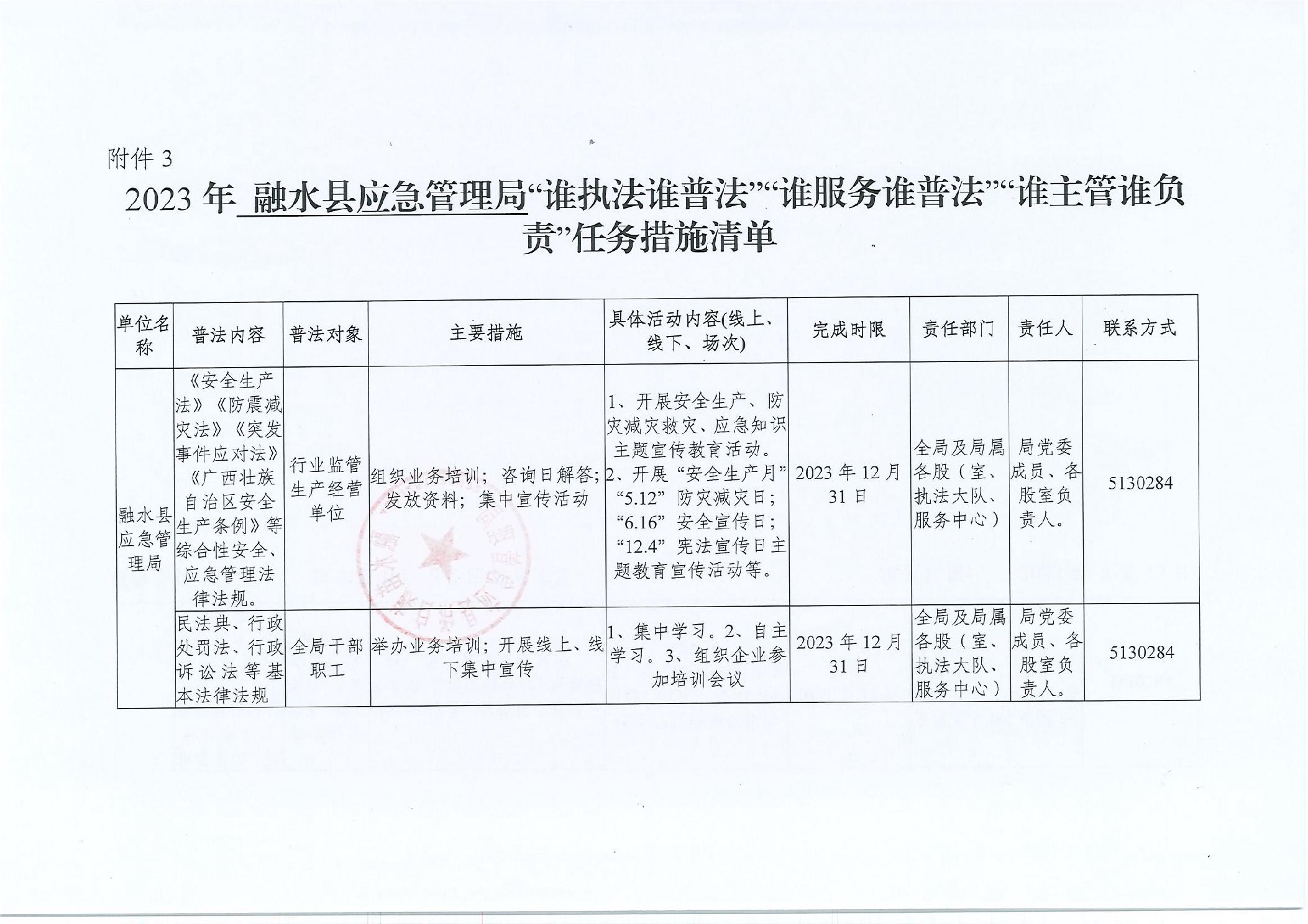 2023年 融水县应急管理局“谁执法谁普法”“谁服务谁普法”“谁主管谁负责”任务措施清单