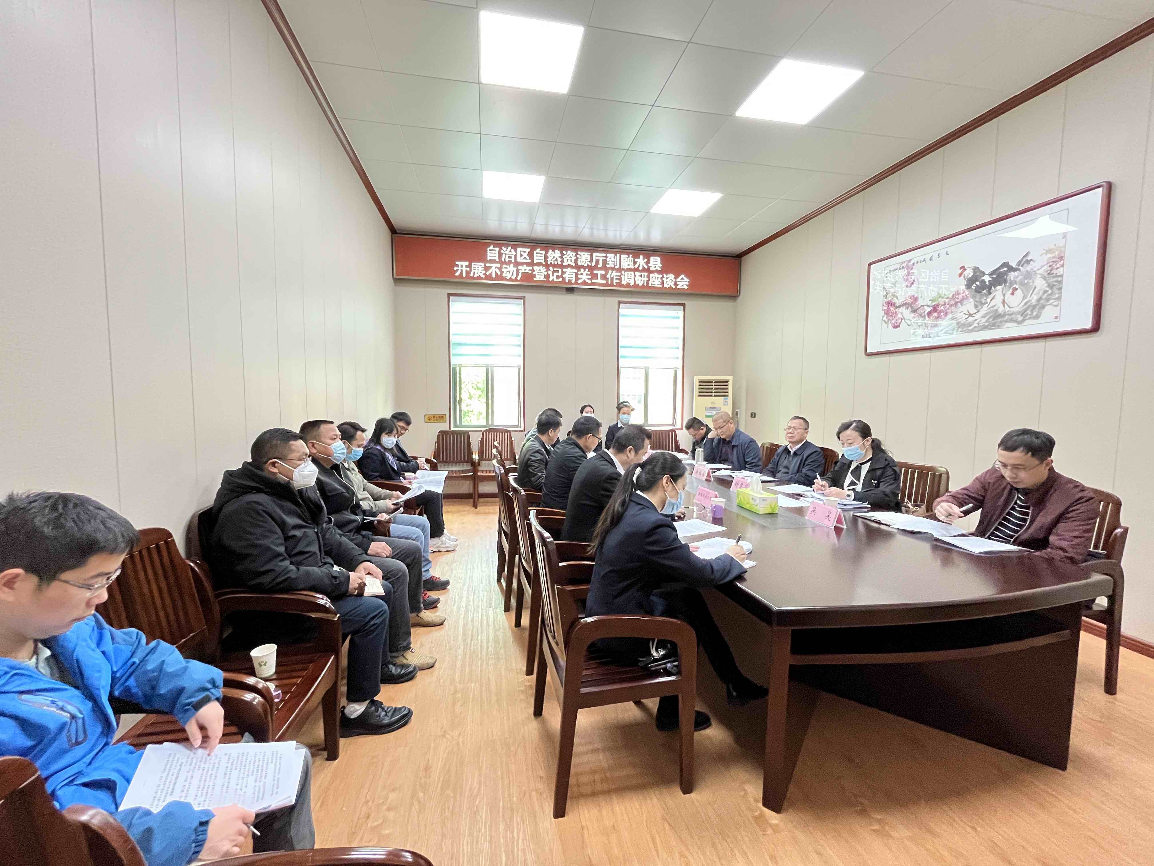 2023年3月30日,自治区自然资源厅一级巡视员吴锡熹带队到融水县自然资源和规划局、不动产登记中心开展实地调研工作。