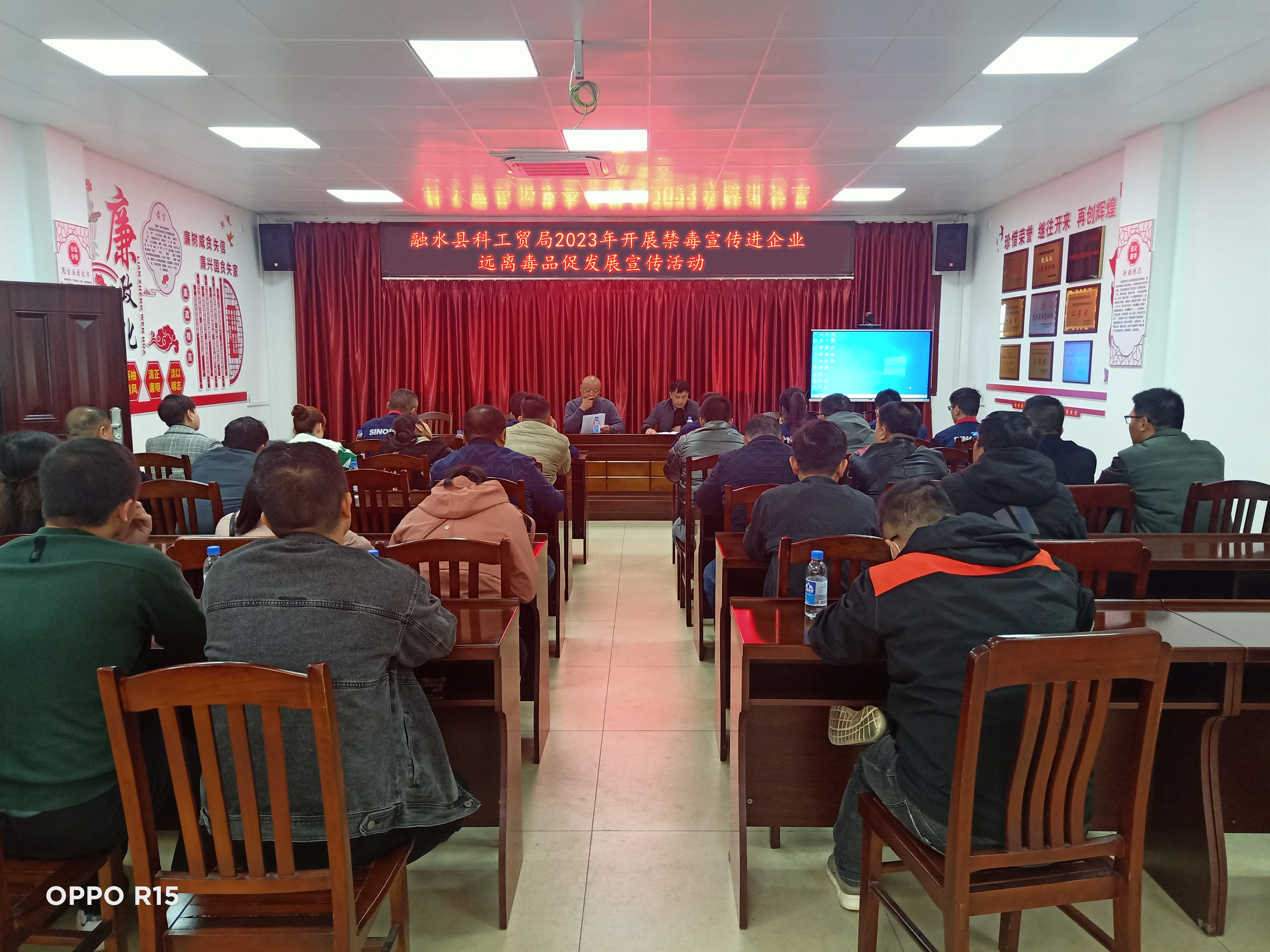为进一步深入开展禁毒宣传活动,努力拓宽禁毒宣传覆盖面,提高企业员工对毒品的认识。近日,融水县科技工贸和信息化局开展了以“禁毒宣传进企业,远离毒品促发展”为主题的禁毒宣传活动。