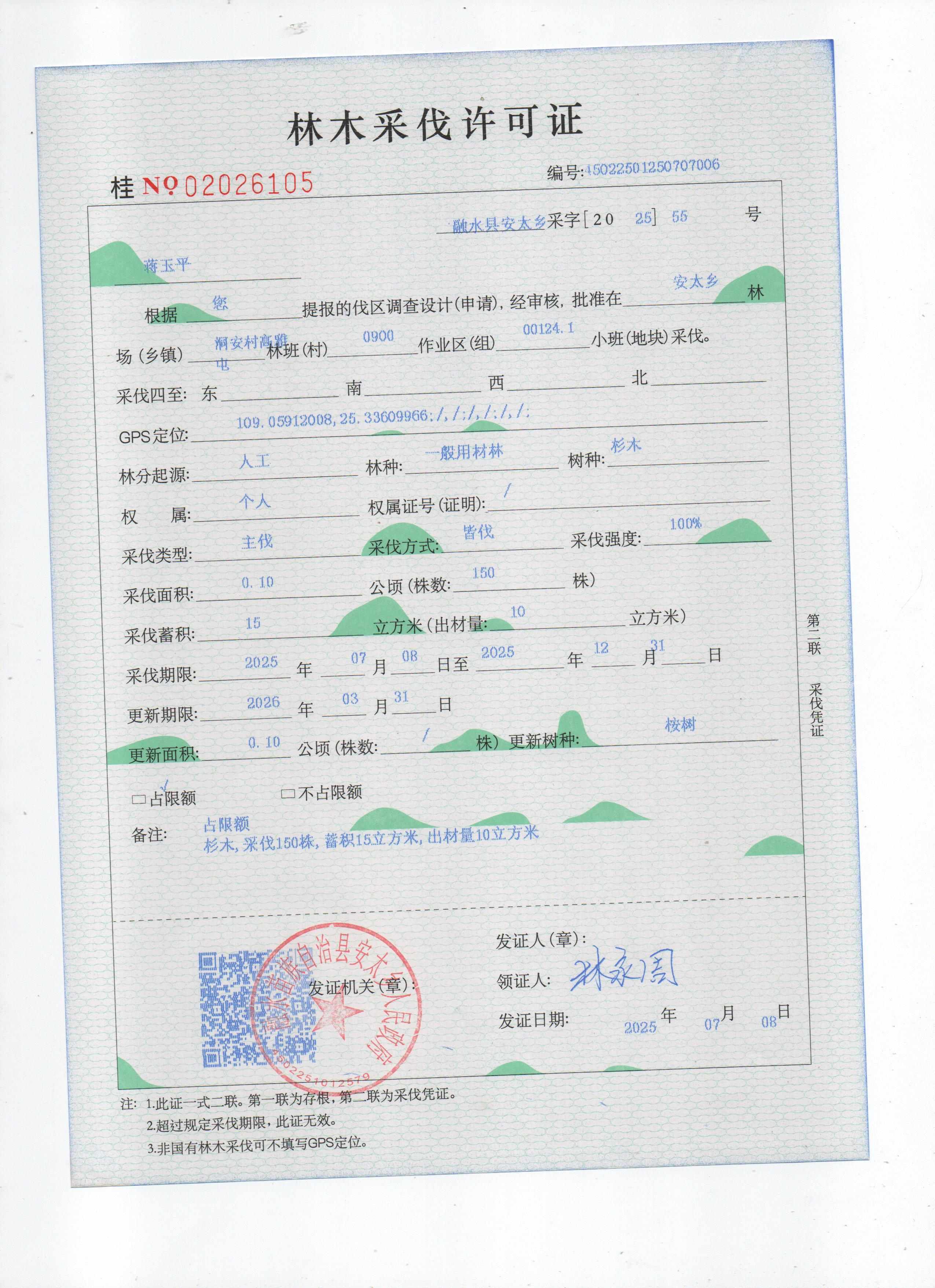 林木采伐许可证:蒋玉平(桂NO.02026105) 公示