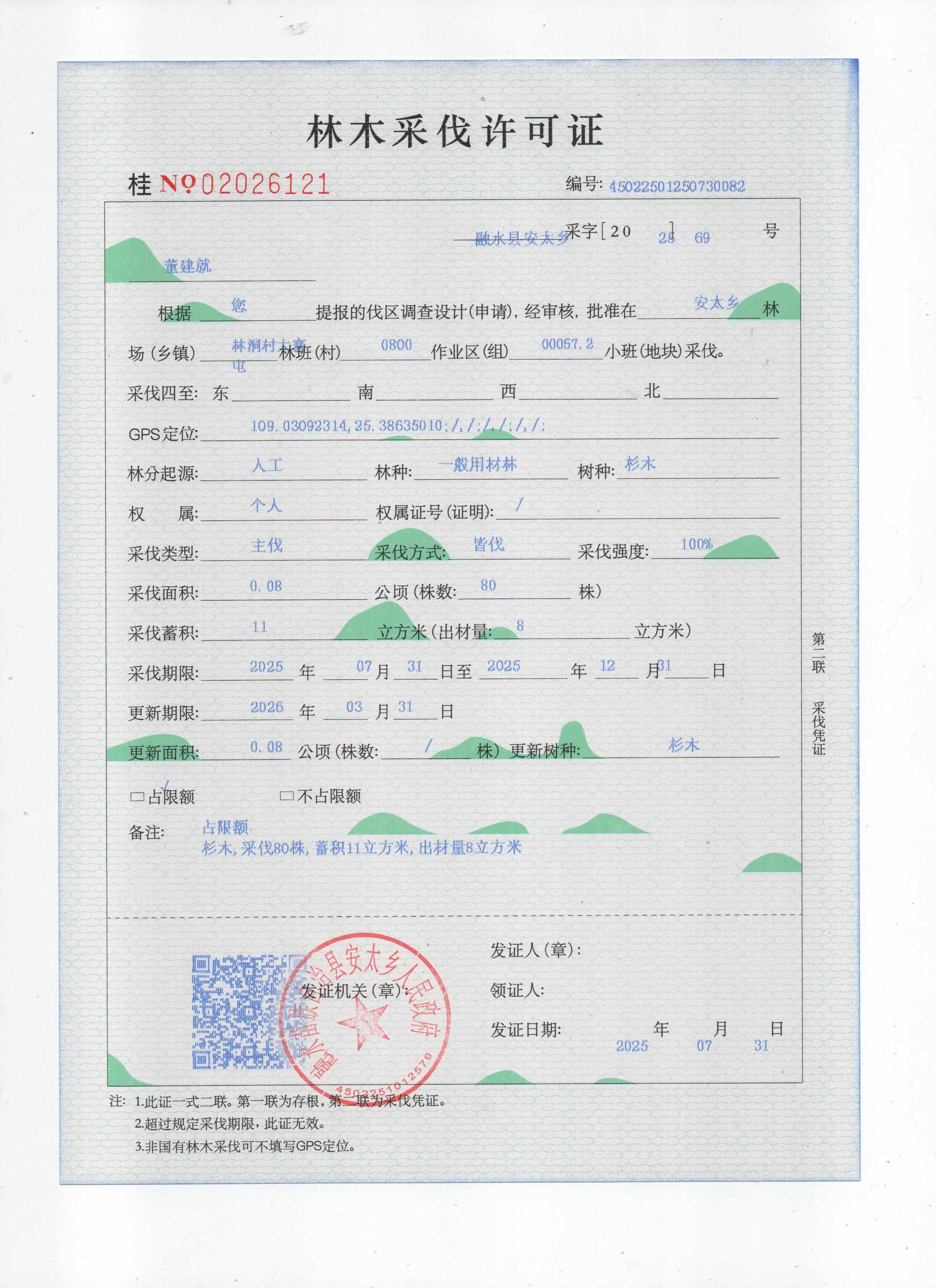 林木采伐许可证:董建就(桂NO.02026121) 公示