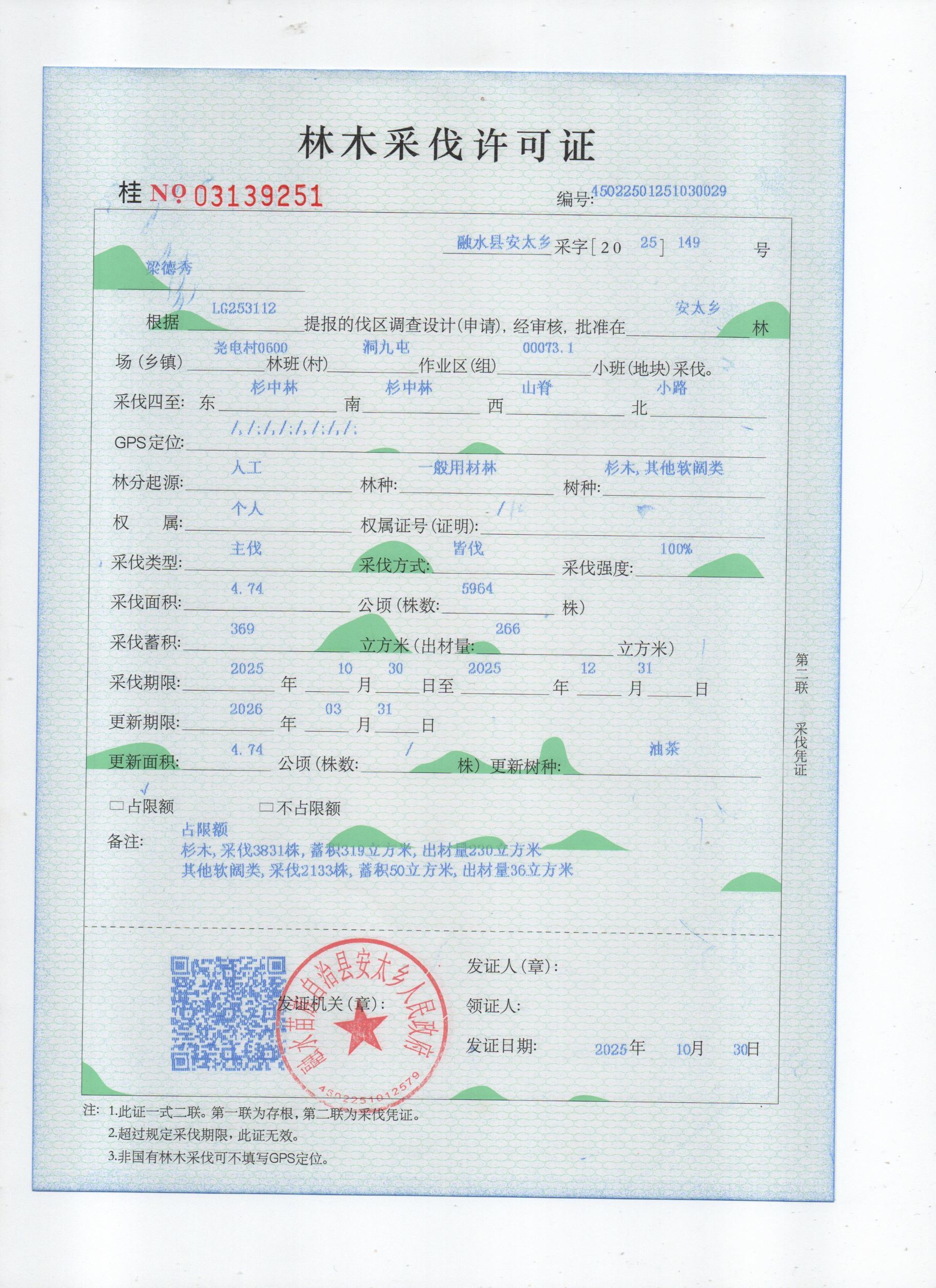 林木采伐许可证:黄汉敏(桂NO.02026077)公示