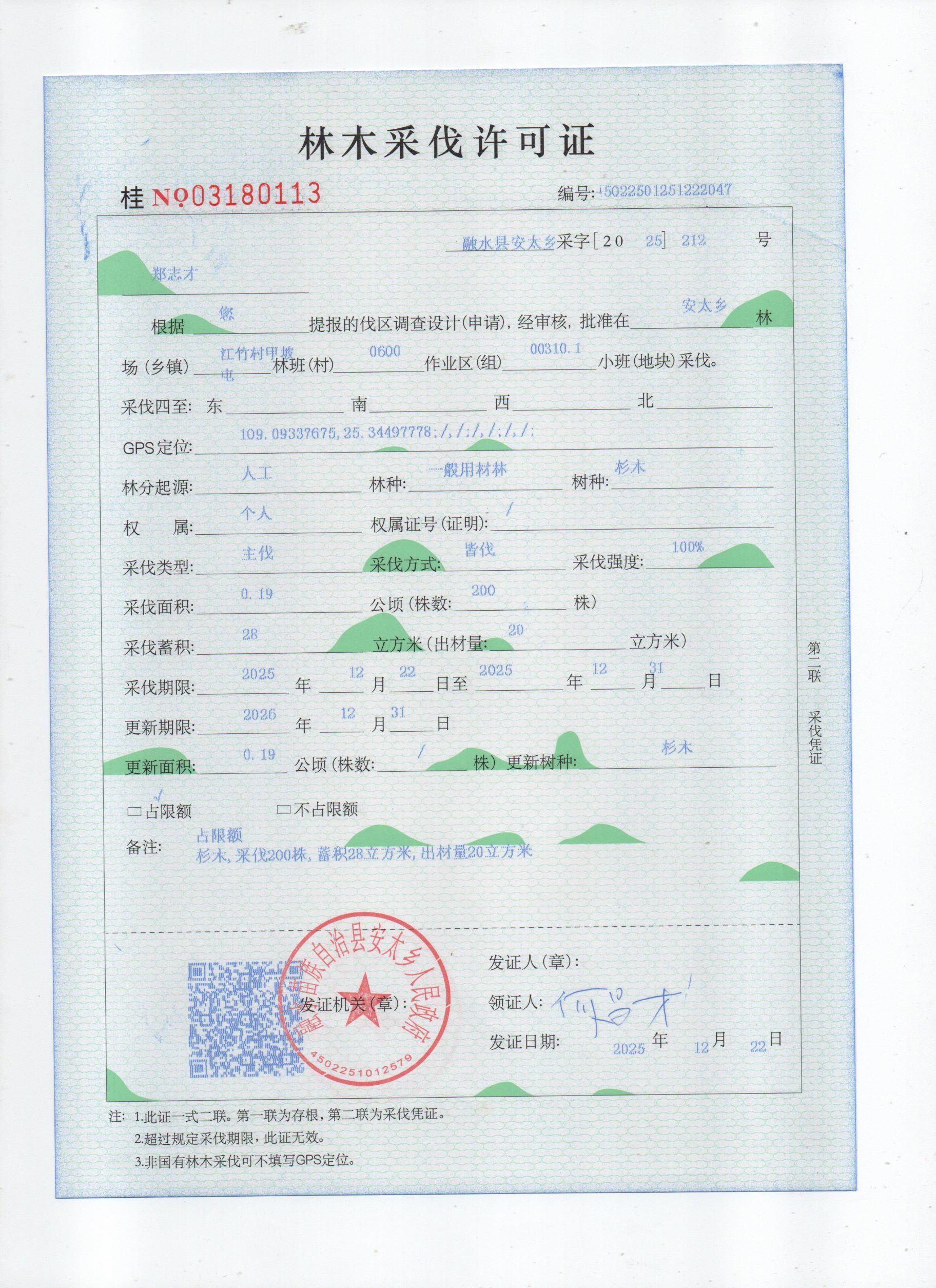林木采伐许可证:郑志才(桂NO.03180113)公示