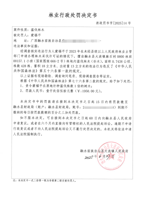 浪政罚书字〔2025〕14号林业行政处罚决定书