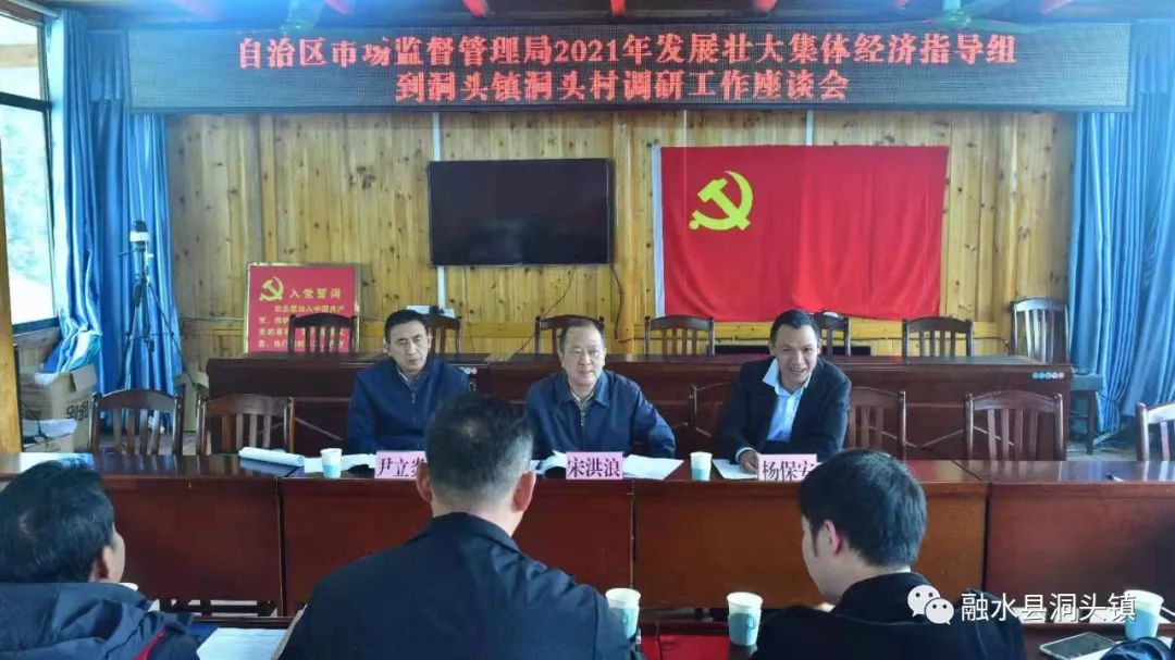 12月9日,自治区市场监督管理局第七组第1督导小组二级巡视员宋洪浪一行3人到洞头镇洞头村开展集体经济督导调研工作。融水县委组织部远教中心主任杨保安参加调研。