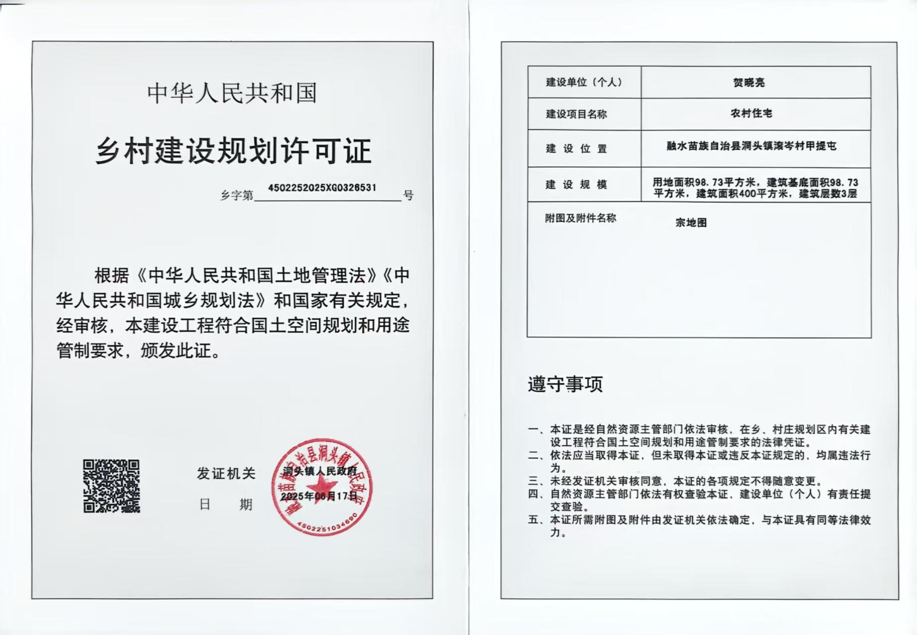 乡村建设规划许可证(乡字第:4502252025XG0326531)公示