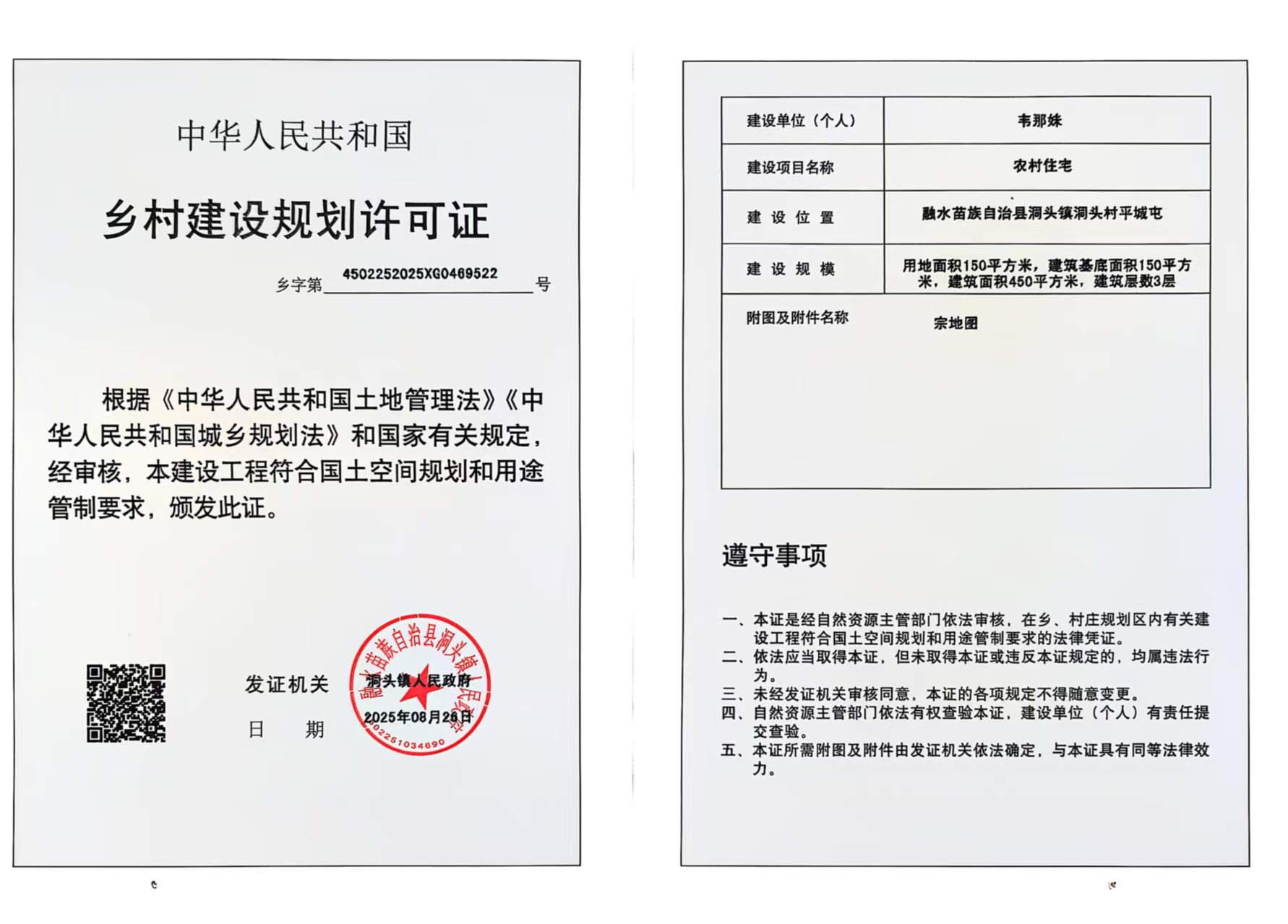 乡村建设规划许可证(乡字第:4502252025XG0469522)公示