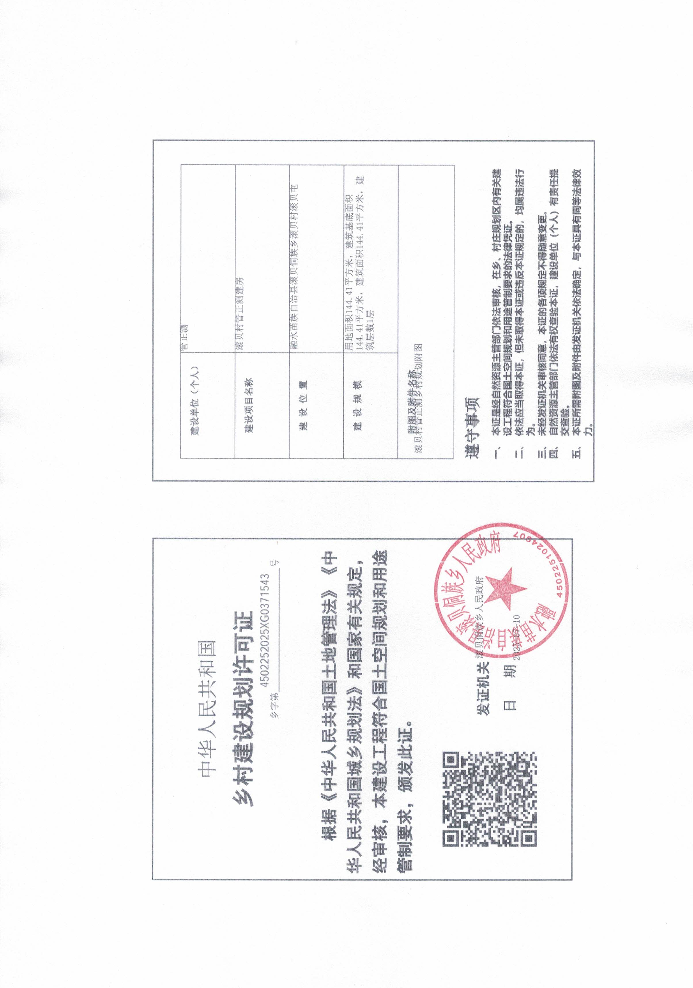 滚贝侗族乡乡村建设规划许可证